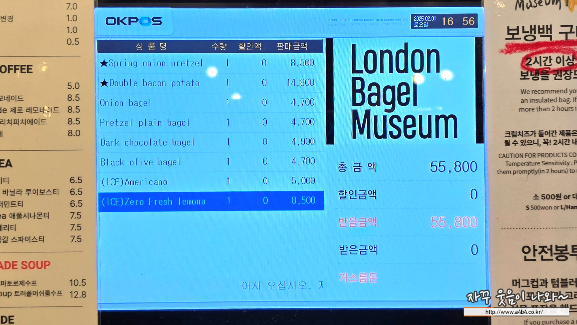 뭐 음료 두 잔에 베이글 6개 선택하니 바로 5만원 넘어버리네요.