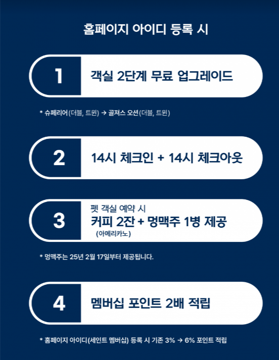 늦게 호텔에 오시는 것 아니면 여행사 홈페이지 통한 강릉 세인트존스 호텔 예약보다는 홈페이지 다이렉트 예약을 통해 결제하시는 혜택이 더 큰 것 같네요.