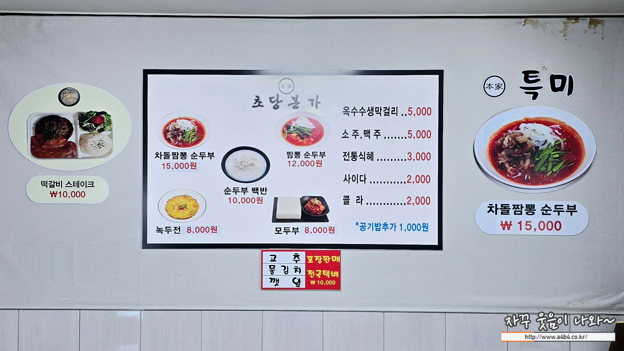 | 초당본가 짬뽕순두부 메뉴 및 가격