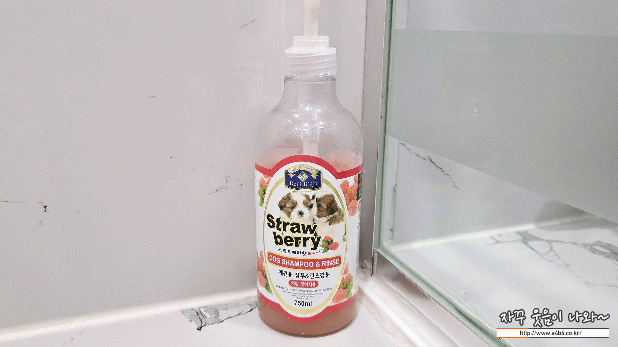 샤워부스에 욕조는 없고요. 샴푸와 린스, 바디워시가 준비되어 있습니다. 그리고 바닥에는 강아지 전용 샴푸겸용 린스가 준비되어 있네요. 세인트존스호텔 펫룸 패키지 예약하면 강아지용 하누끼탕이나 드라이룸 서비스가 있다고 했는데 저희는 서비스 받지 못했습니다.