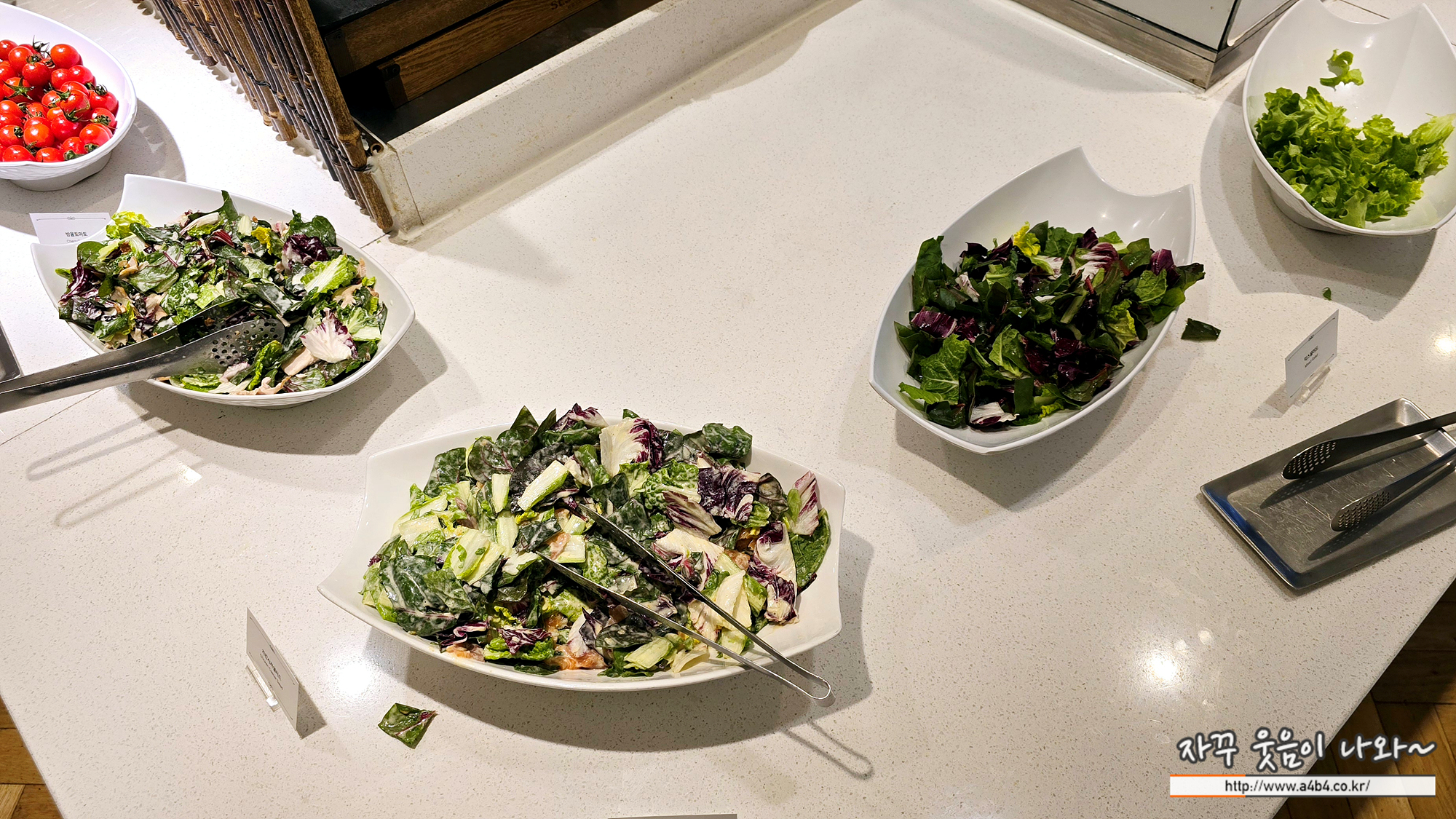 샐러드는 브로컬리, 치킨샐러드, 연어 샐러드 등이 준비되어 있고요.