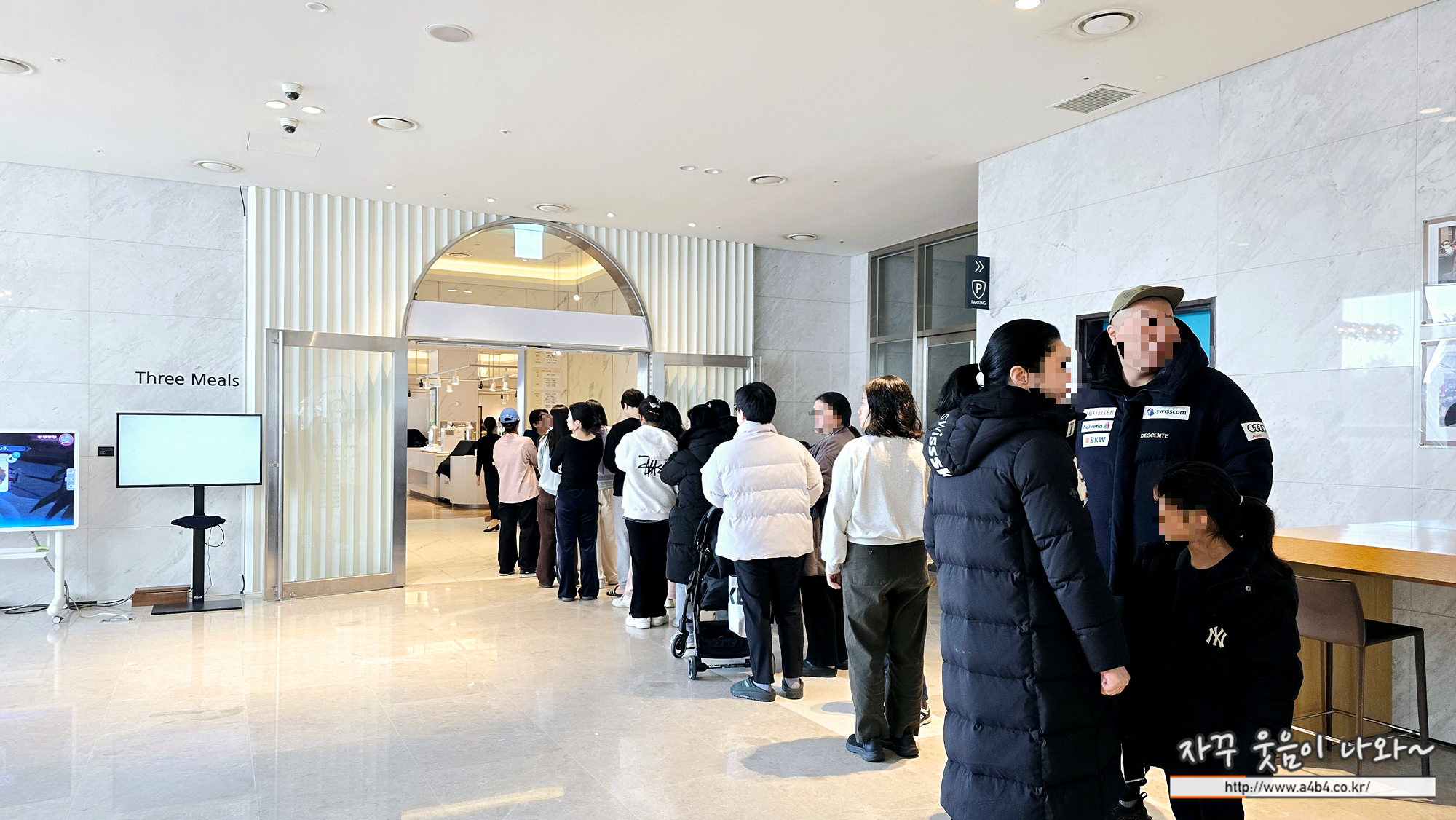 저희는 2인 뷔페 패키지 상품을 구입하였고, 다음날 아침 8시 50분에 쓰리밀즈에 도착해서 줄 서고 8시 55분에 조식뷔페 등록 하였는데요. 입장은 9시 34분에 했습니다. 무려 강릉 세인트존스 호텔 조식 웨이팅 40분 가까이 걸렸네요. 국내외 여러 호텔들을 다녀 봤지만 이렇게 웨이팅이 긴 경우는 처음이었네요.