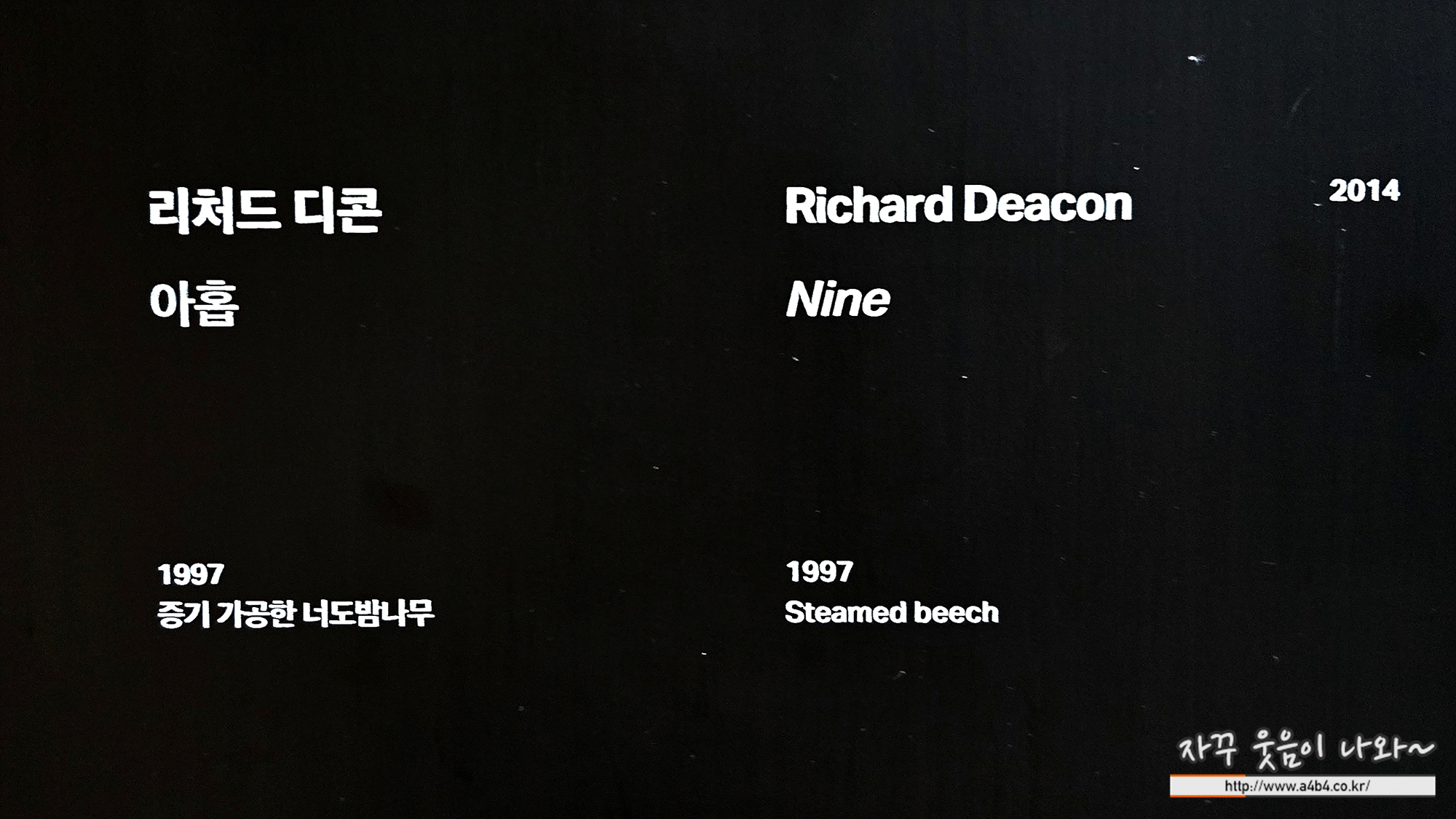 유기적인 형태의 조각으로 잘 알려진 리처드 디콘은 1987년 터너상을 수상한 바 있는 영국의 대표적인 현대조각가입니다. 그는 재료 본연의 특성을 이해하고, 자연 법칙에 기반한 기하학적 모듈을 제작해 조립하거나 연결해 나가는 방식을 통해 생동감 있는 작품을 제작합니다. 이 작품은 너도밤나무 본연의 색을 띤 나무조각들이 격자 형태로 연결되며 원통의 모양을 갖춰 부드럽게 휘어지는 모습을 갖습니다.