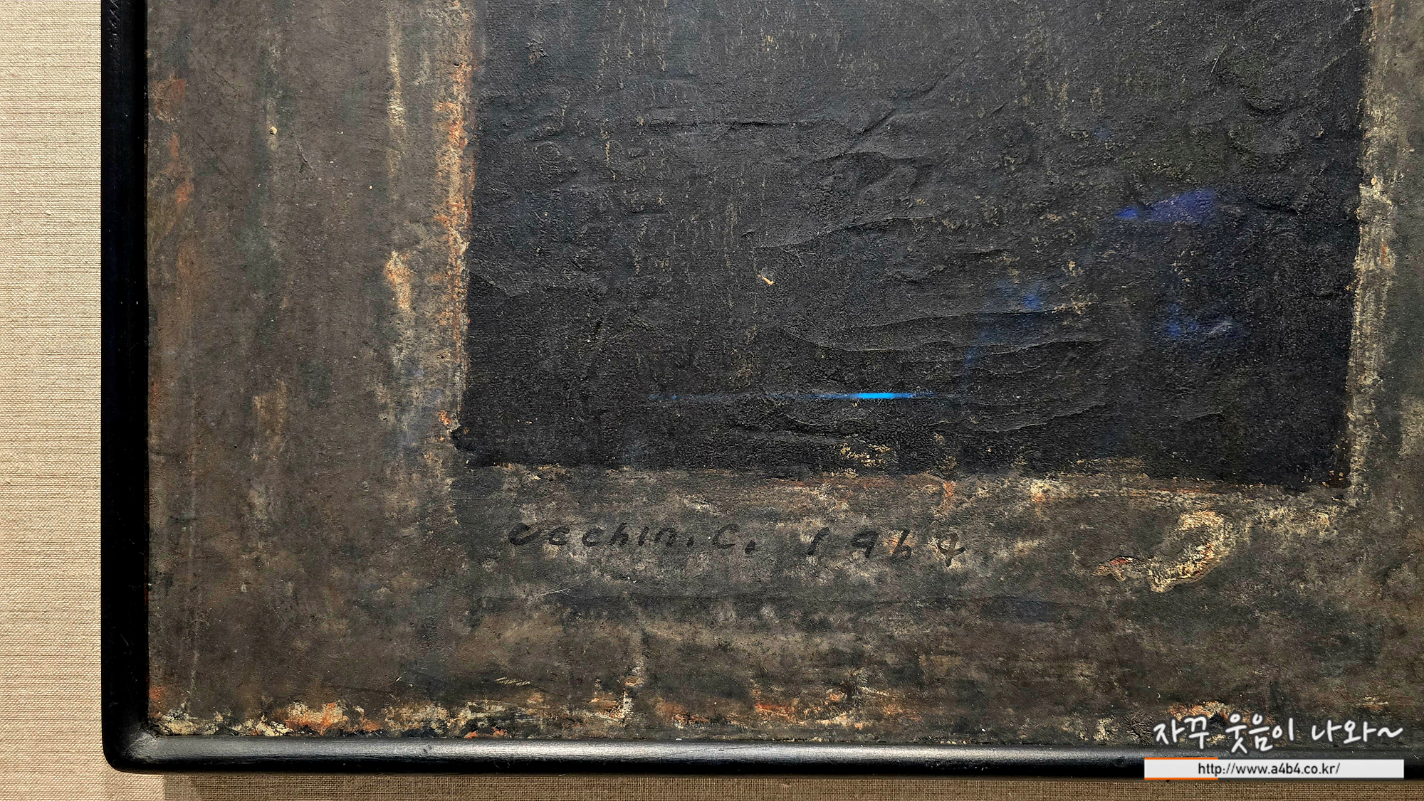 이 작품에서는 갈색과 검은색을 여러 번 덧칠한 두꺼운 표면이 가장 먼저 눈에 들어옵니다. 그는 갈색과 검정색을 여러 번 덧칠하여 두꺼운 표면을 만들고, 그 표면을 다시 굵어내면서 작품의 거친 질감을 강조했습니다 이는 당시 한국 미술계의 새로운 물결 중 하나였던 앵포르멜 기법의 특징이기도 합니다. <무제>에서는 작가의 서구 미술 경향에 대한 실험과 탐색의 과정을 느낄 수 있습니다.