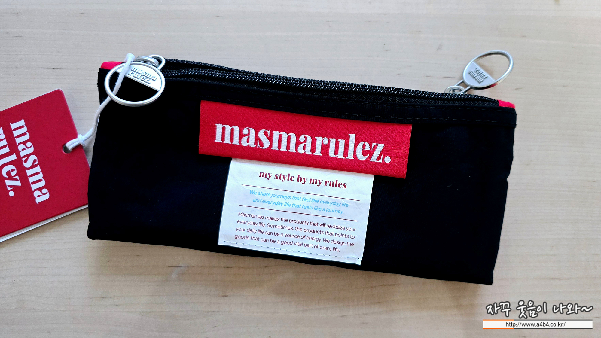 광화문 교보문고에서 사은품으로 받은 마스마룰즈 파우치입니다. 모델명은 Twin zipper multi pouch pencil case로 정가는 29,000원, 공홈 할인가격은 16,800원 입니다