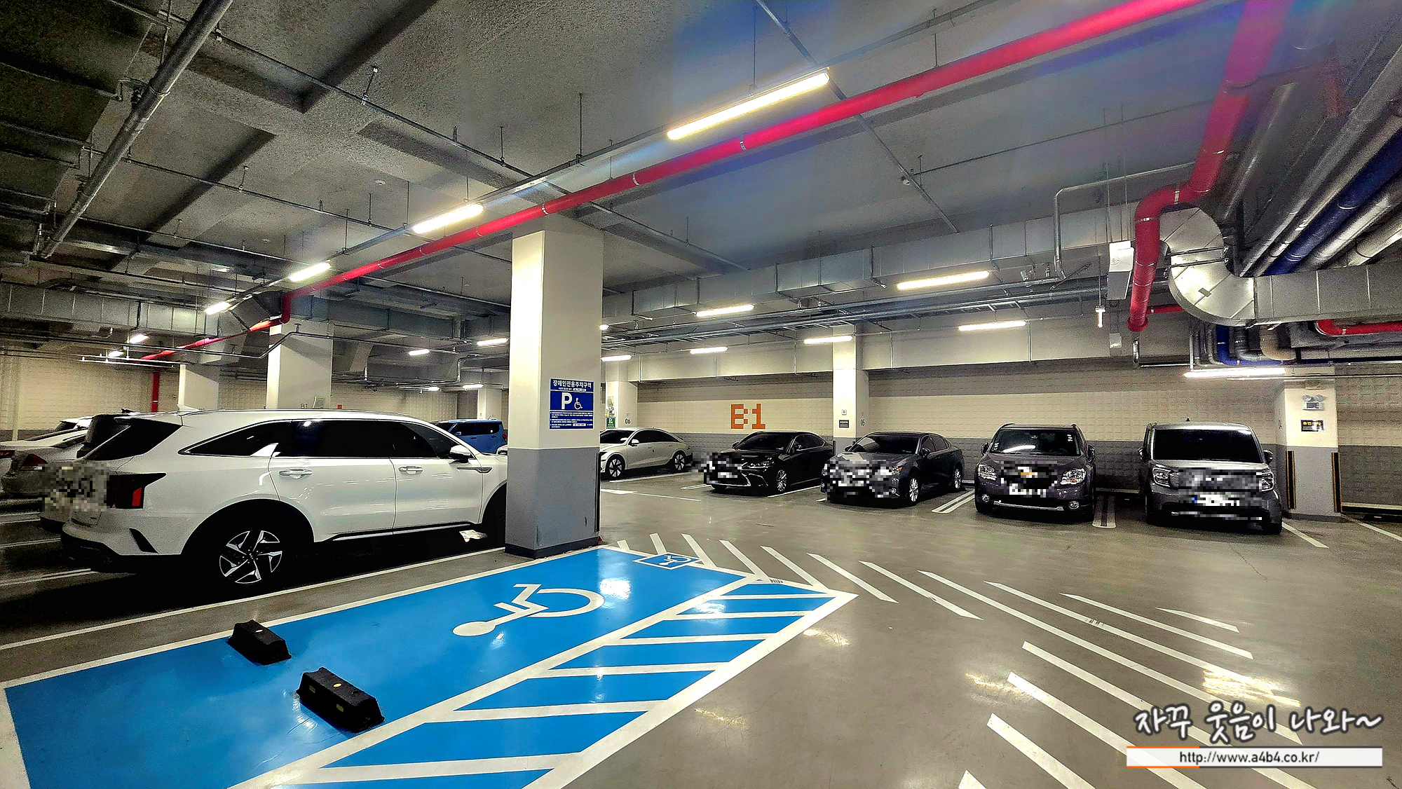 삼성전자AS센터 서초센터 주차장 지하 1층입니다. 깔끔하게 잘 관리되고 있고 무엇보다도 주차간격에 여유있어 수리받을 물품을 가지고 내리거나 주차하고 하차하는데 큰 어려움은 없습니다.