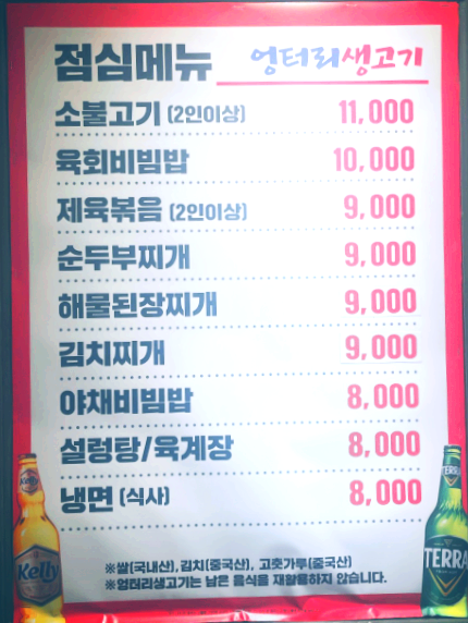 | 엉터리생고기 성수점 메뉴 및 가격