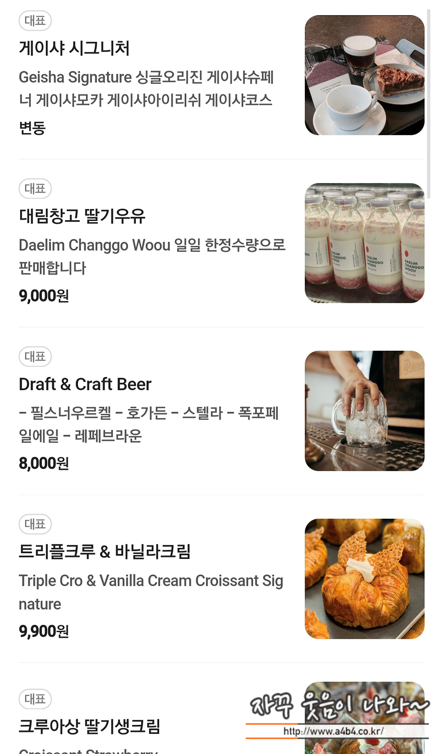 이 외에도 성수동 대표 베이커리 카페인 대림창고 갤러리는 다양한 빵과 브런치가 준비되어 있습니다. 대표 메뉴중 하나인 게이샤 시그니처 ( Geisha Signature) 가격은 17,000원 입니다. (싱글오리진 게이샤슈페너 게이샤모카 게이샤아이리쉬 게이샤코스 구성)