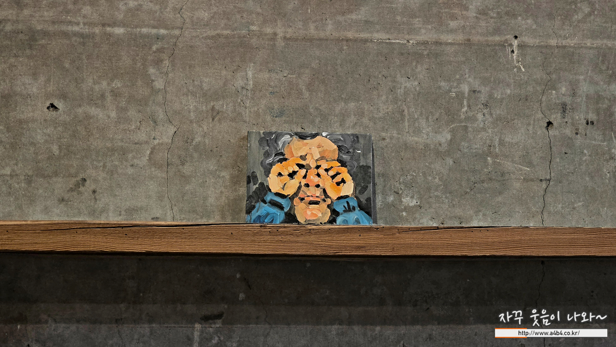 성수동 대림창고 카페 입구 작은 공간에도 구나현 작가의 구겨진 얼굴 작품들을 만나볼 수 있습니다.