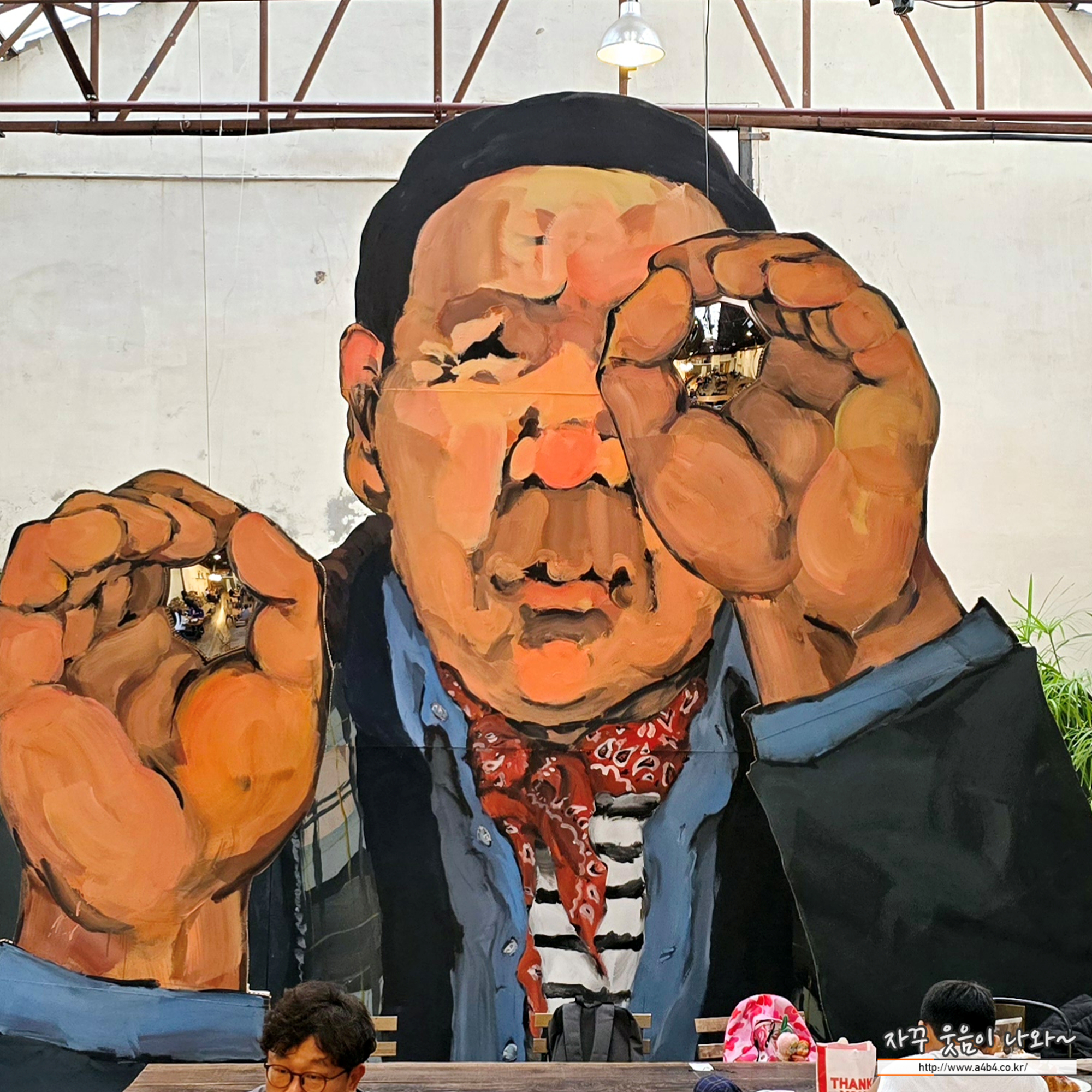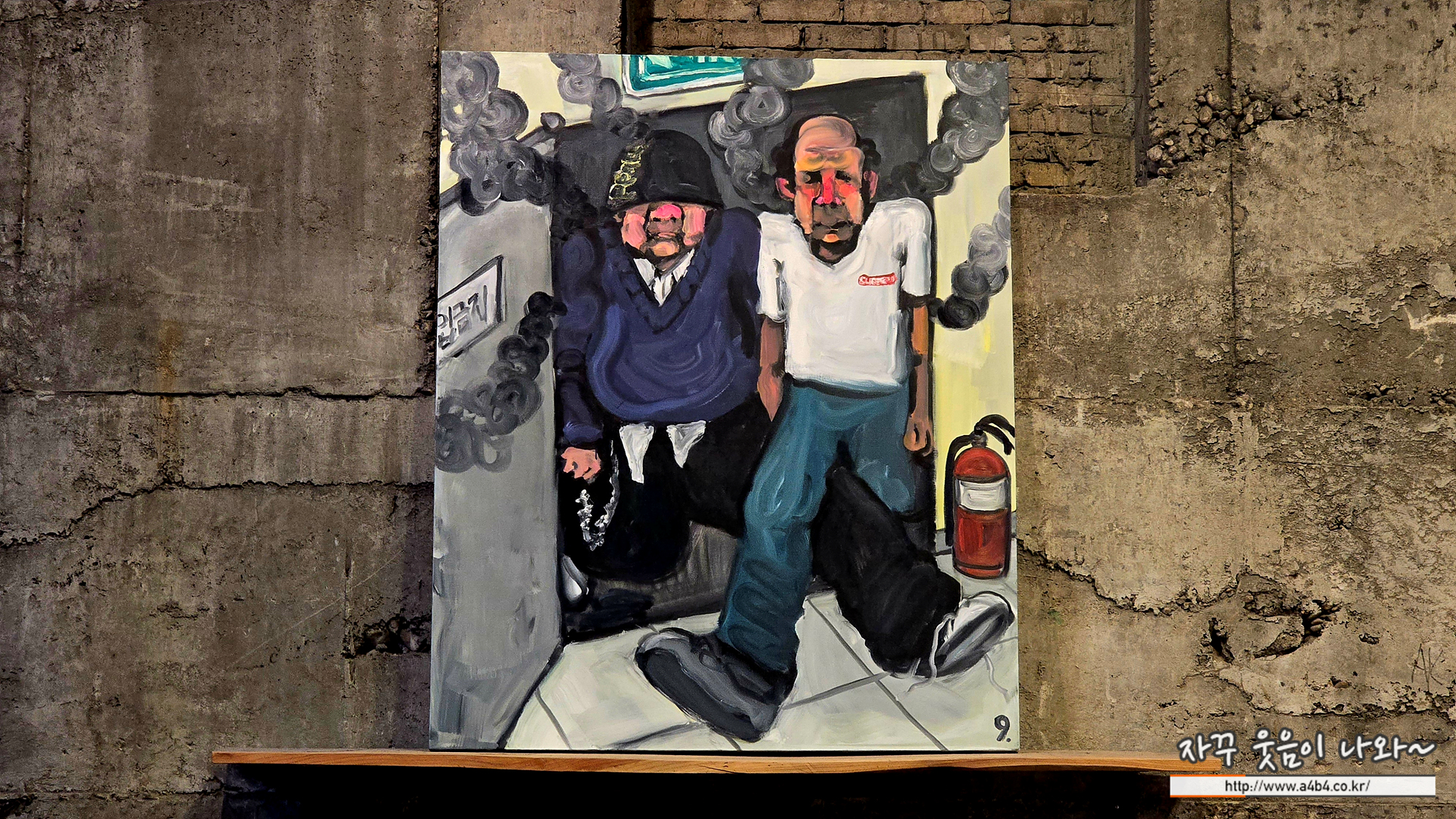 설수동 대림창고 카페 벽변에는 구나현 작가의 캔버스 작품이 전시되어 있으니 테이블에 앉아 커피 드시는 분 방해되지 않게 조심해서 다니시면서 작품 감상하시면 됩니다.