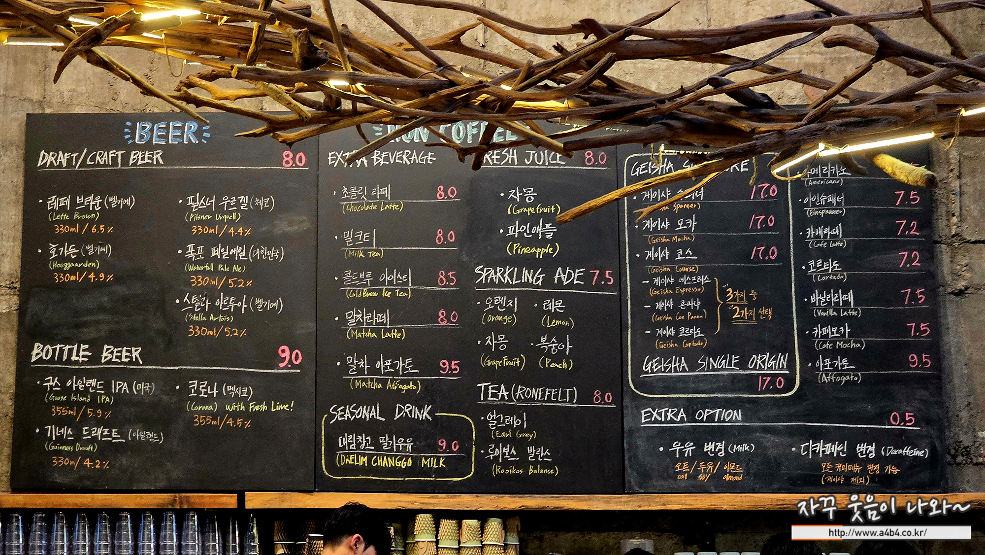 음료는 다양하게 준비되어 있지만 가격은 합리적이라고 보기는 어렵습니다. 아메리카노 한 잔에 6,500원, 레떼류는 8,000춴 저후로 성수동 프리미엄 거품이 엄청 끼어 있다는 느낌입니다.