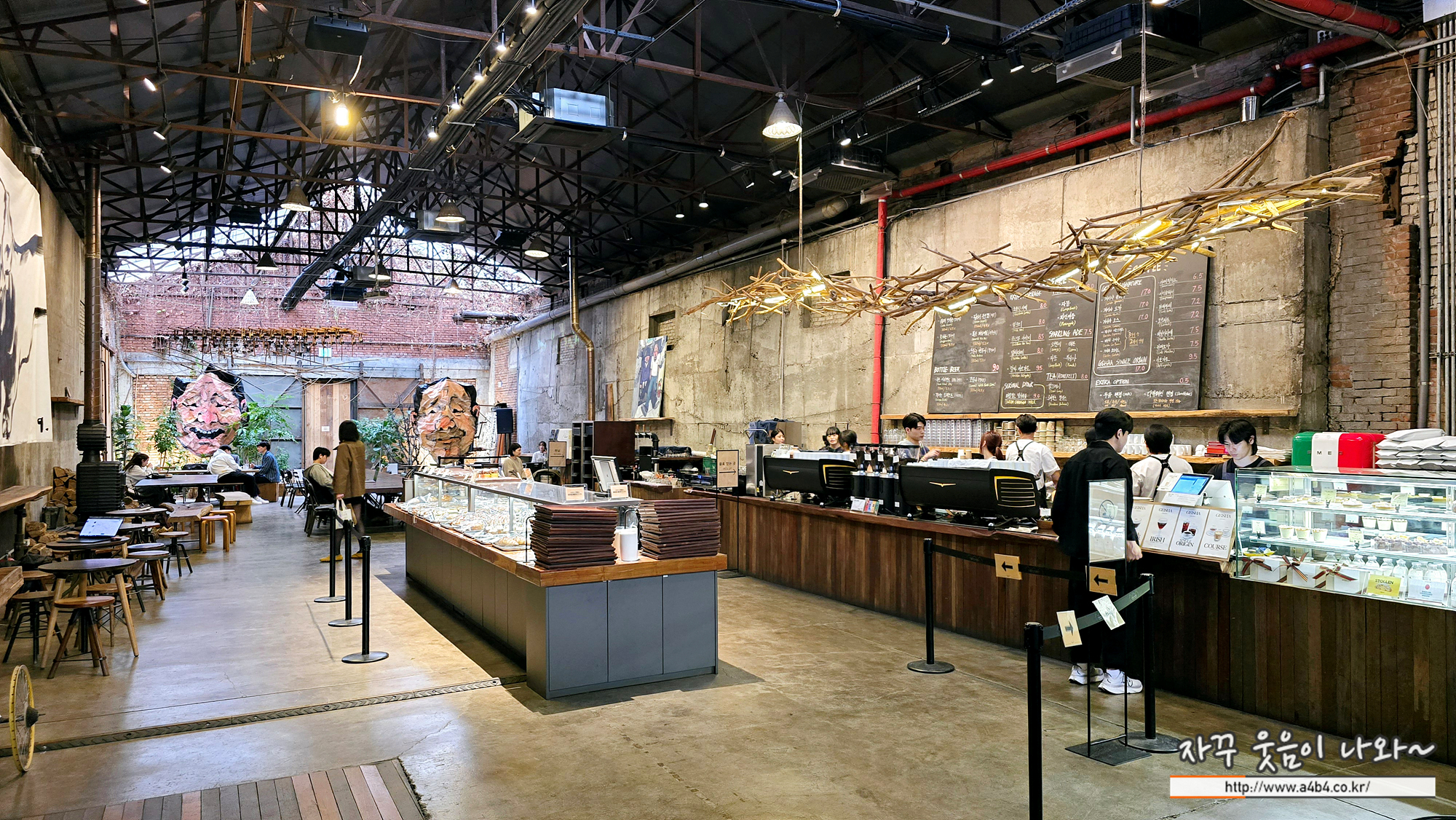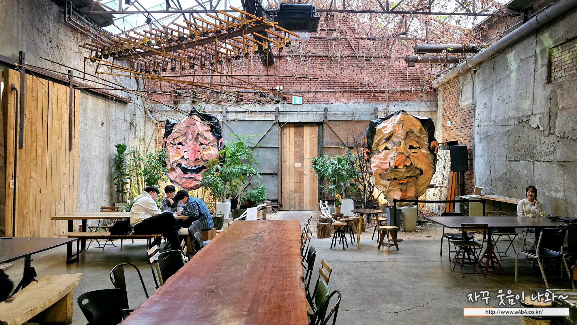 글 처음에 소개한 것과 같이 '구나현 개인전'이 열리고 있는 성수동 카페인 성수동 대림창고 갤러리는 핫 플레이스인 성수동에 위치한 복합 문화 공간으로, 과거 정미소 건물을 개조해 전시, 공연, 브랜드 이벤트 등이 열리는 예술 허브로 자리 잡았습니다. 높은 천장과 빈티지한 붉은 벽돌 외관이 특징이며, 내부에는 갤러리뿐만 아니라 카페와 레스토랑도 운영되어 방문객들에게 문화와 휴식을 동시에 제공하는 곳인데요. 사진과 같이 요즘 유행하는 대형 카페와 비슷한 모습을 보입니다.