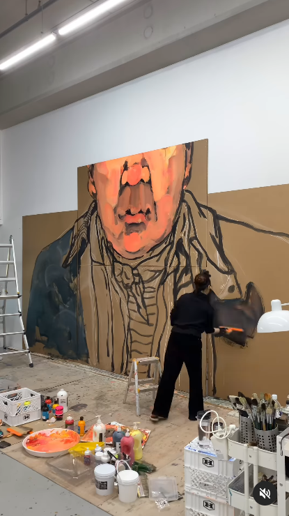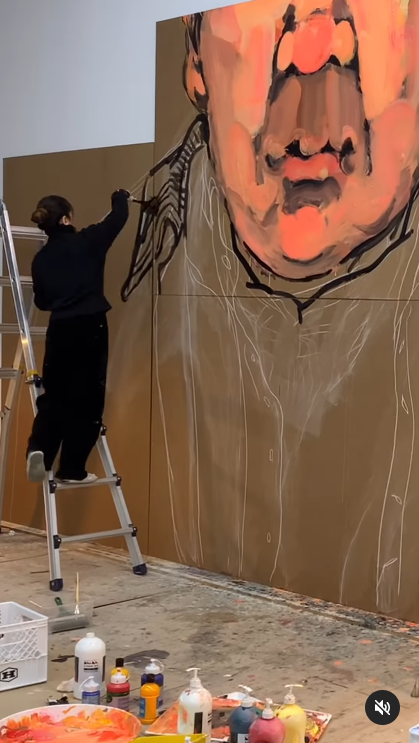 구나현 작가는 두꺼운 골판지에 아크릴 물감으로 작업하는데요. 넓은 면은 붓이 아닌 스퀴즈를 이용해서 작업하기도 합니다. 상당히 선 굵게 작업하는 모습을 구나현 작가 인스타그램에서 확인해 보세요.