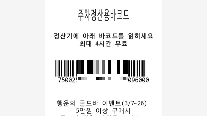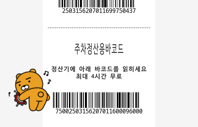 주차정산기에 주차할인권(영수증 바코드, 지류, 웹)을 사용하여 정산 및 출차가 가능합니다.