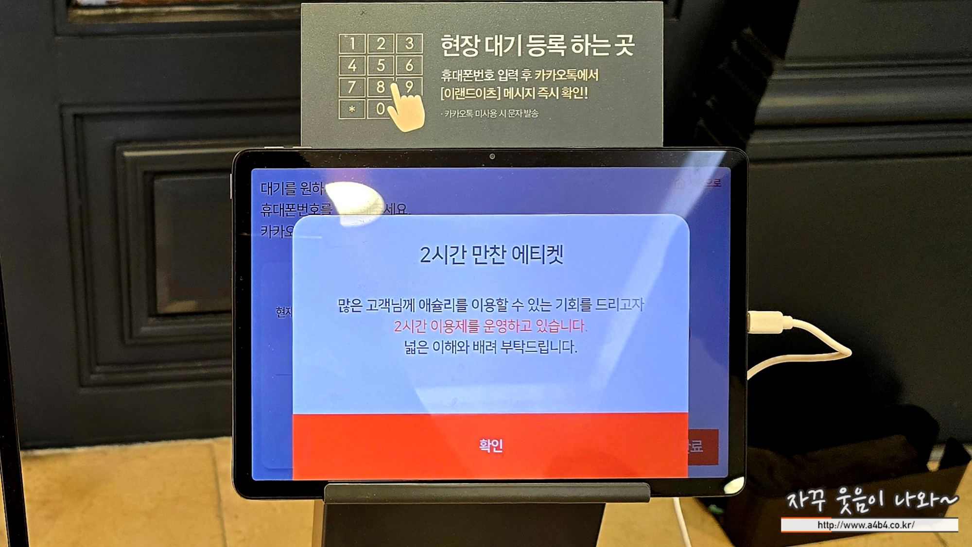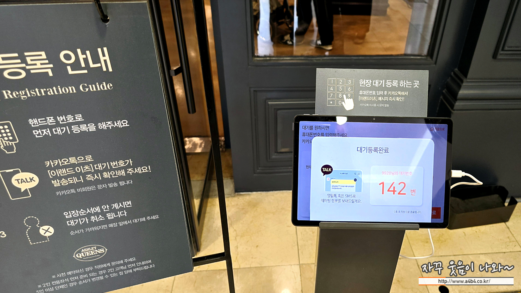 만약 예약하지 못하고 방문 하셨다면 애슐리퀸즈 잠실점 앞에 있는 태블릿을 통해 현장예약 하시면되고요.
