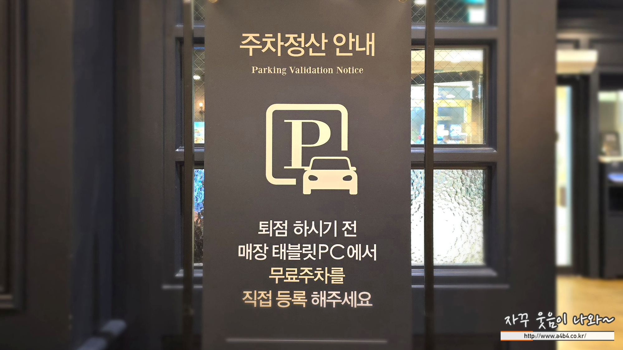결제 후 매장 안쪽에 있는 태블릿에서 주차한 차량의 변호 입력하고 주차확인처리를 셀프로 하시면 잠실 애슐리 퀸즈 무료주차 3시간 가능합니다.