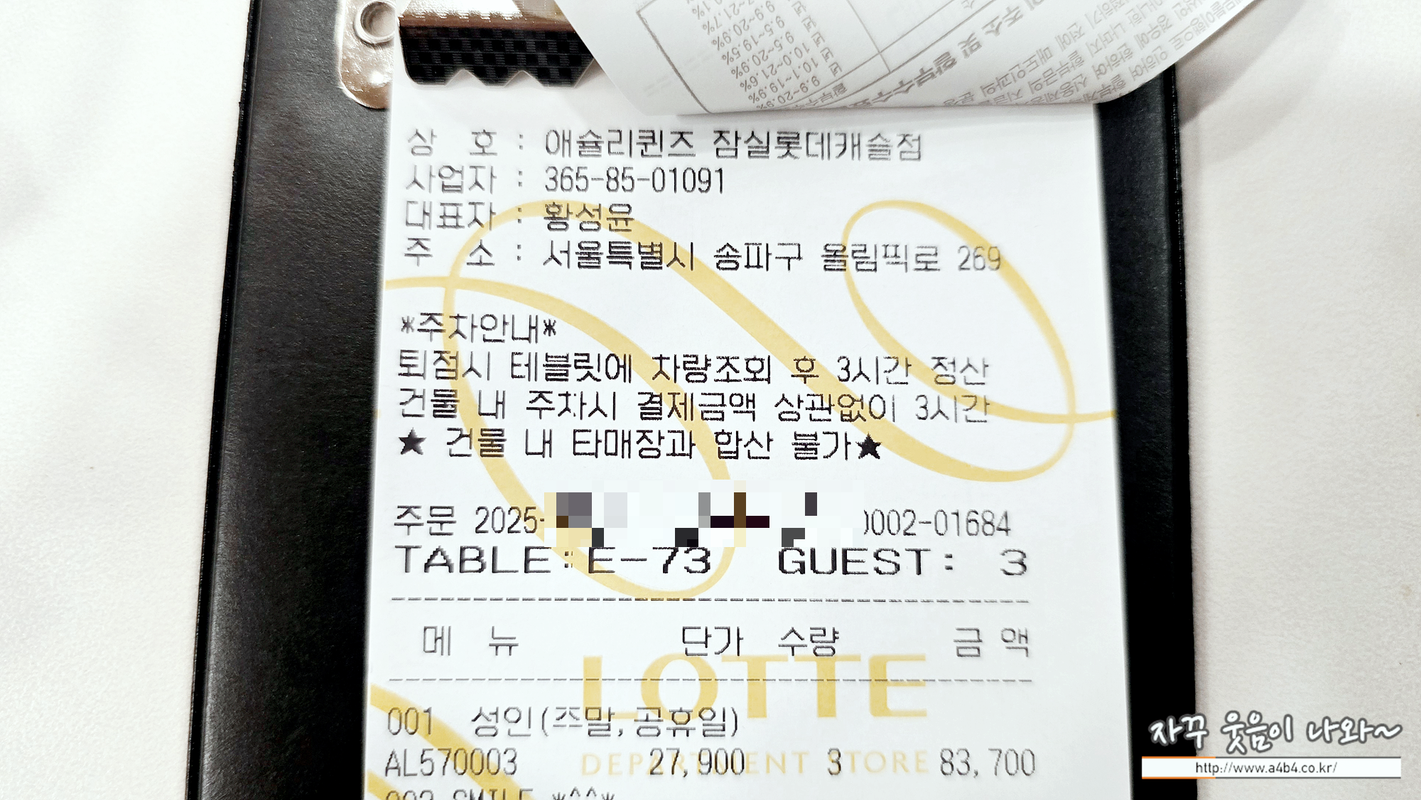 여기까지가 잠실역 롯데캐스골드에 있는 애슐리 퀸즈 잠실점 주차 및 웨이팅, 예약 정보 소개였습니다.