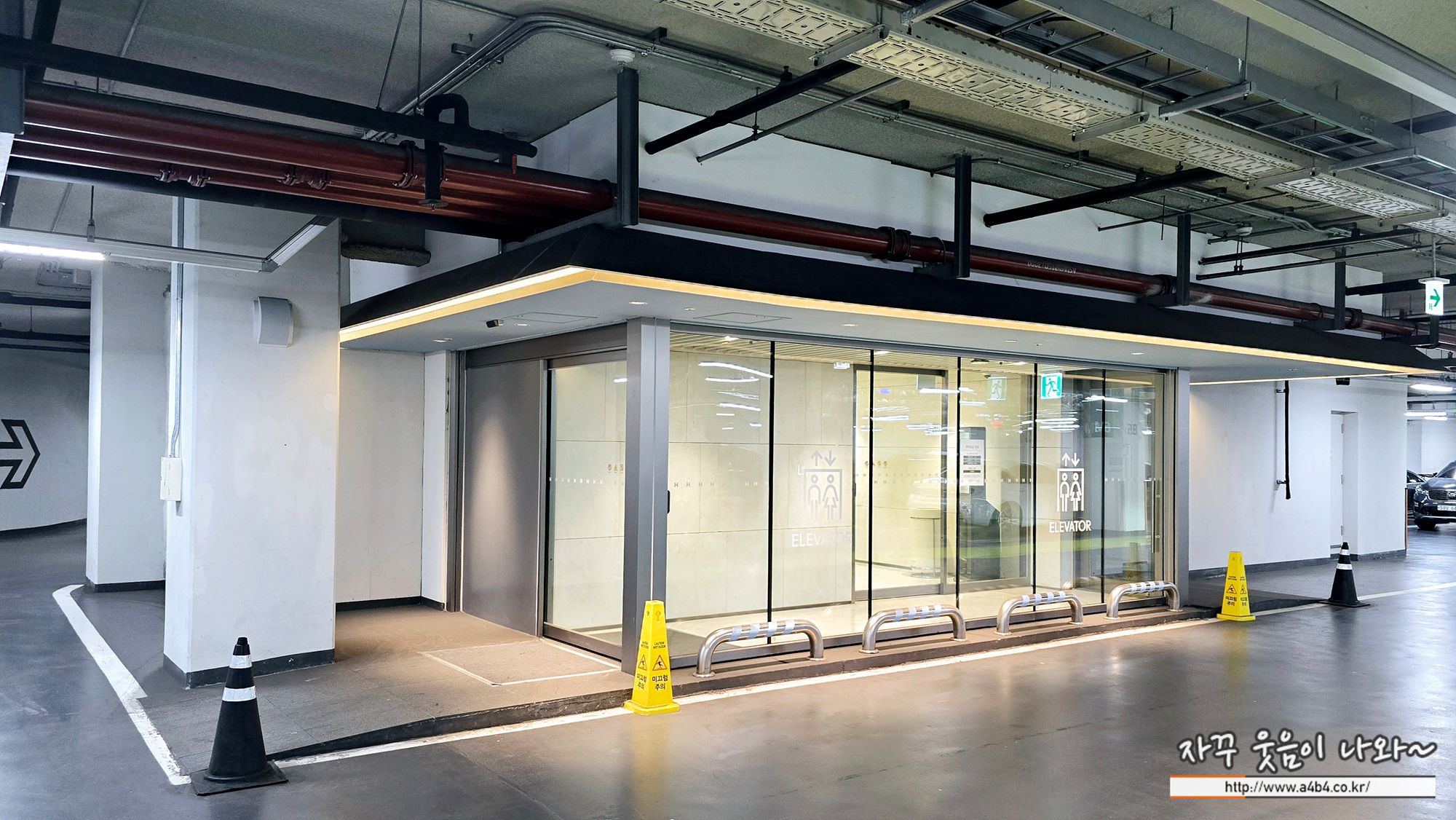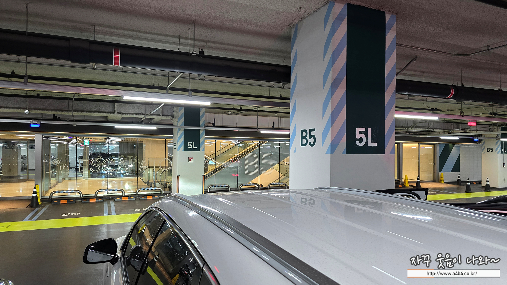 결굴 돌고 돌아서 더현대 서울 지하 5층 주차장까지 내려왔네요. 요 지하 5층 주차장 입구에서 대기하다가 차 한 대가 출차하면 한 대가 들어가는 방식으로 운영됩니다.