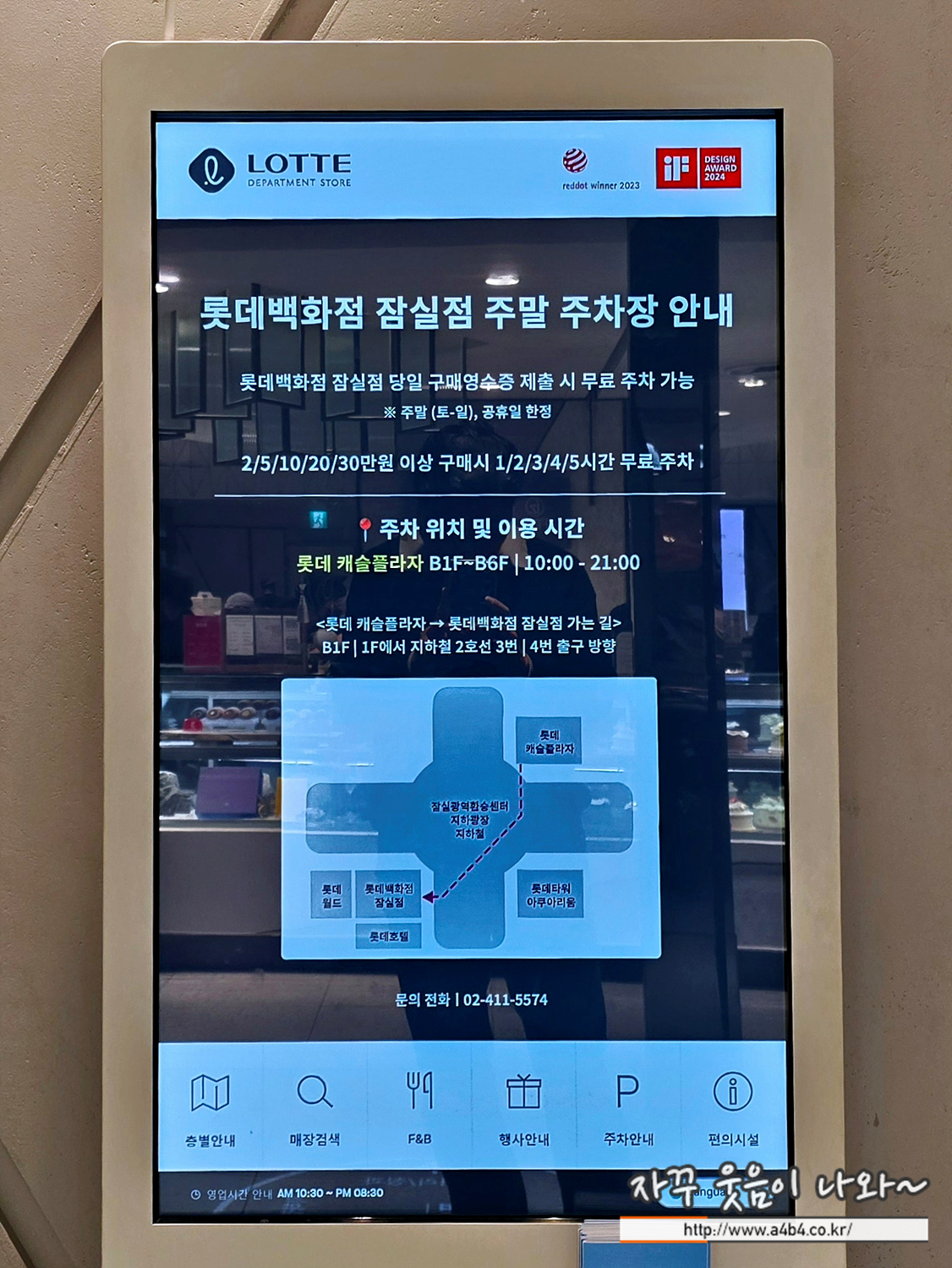 심지어 롯데백화점 회원이면 지급되는 무료주차권도 롯데백화점 잠실점에서는 사용이 불가능합니다.