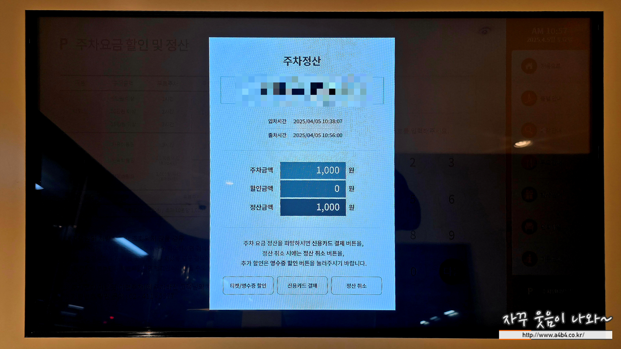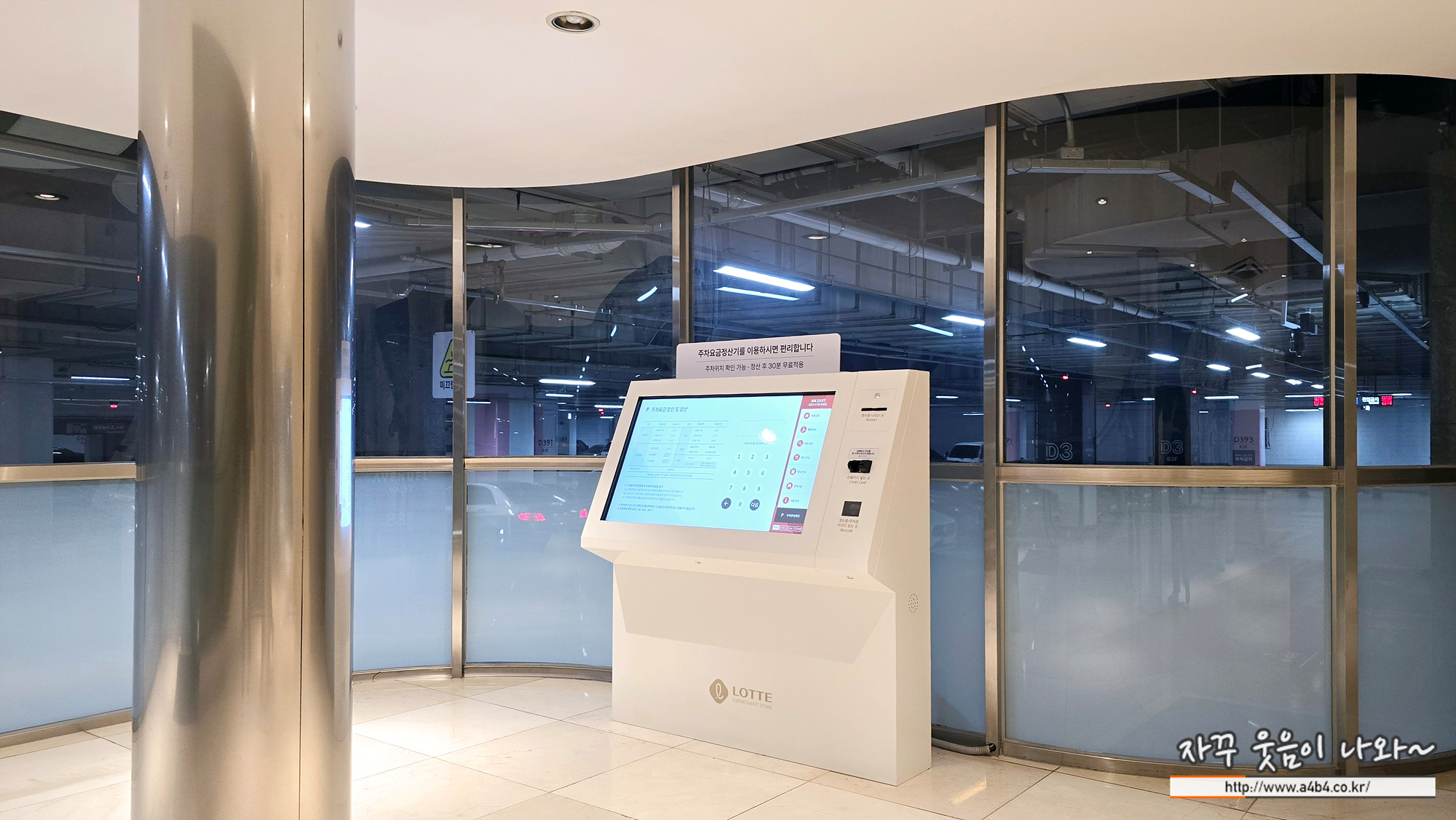 주차요금 확인은 롯데백화점 앱이나, 주차장에 있는 무인 주차요금 정산기를 이용하시면 되는데요.
