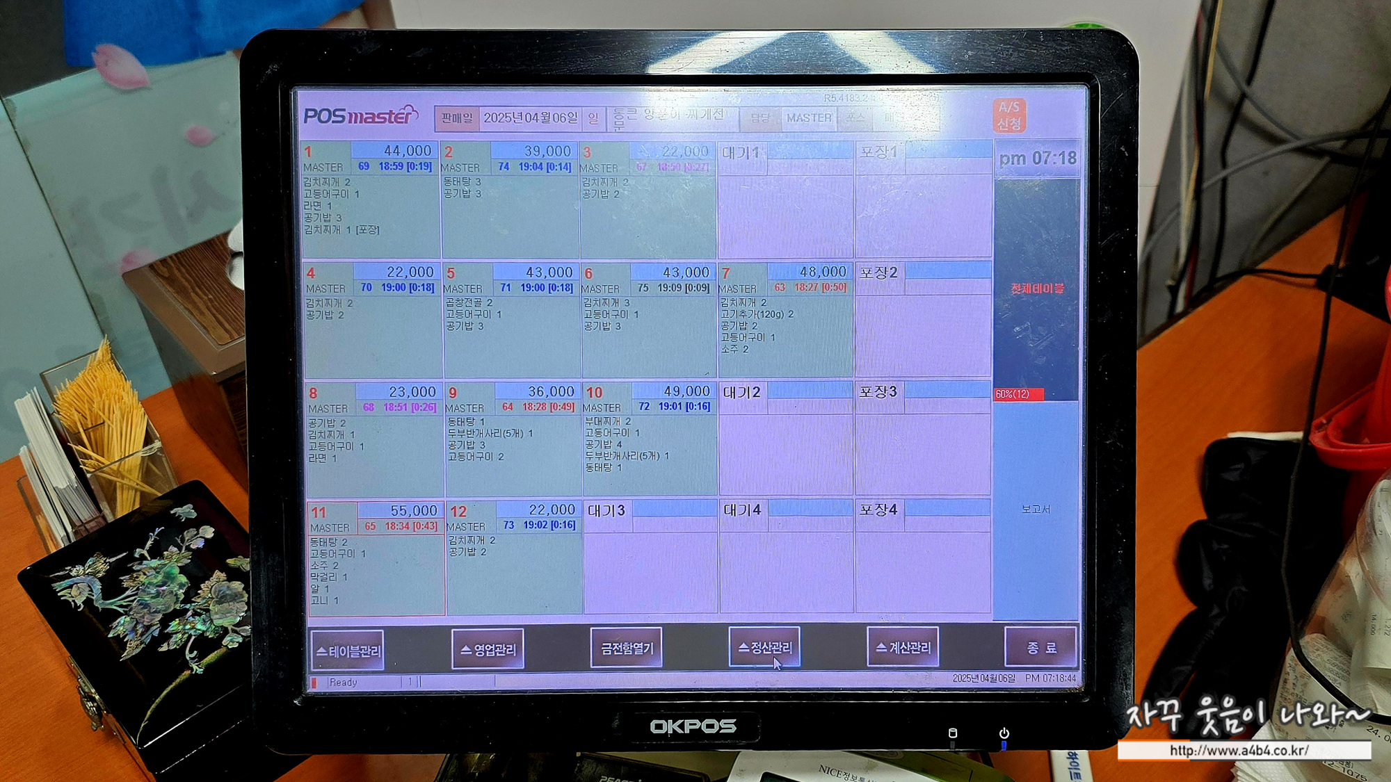 주문내역을 보니 역시 주말에는 김치찌개 메뉴가 대세로 보입니다.