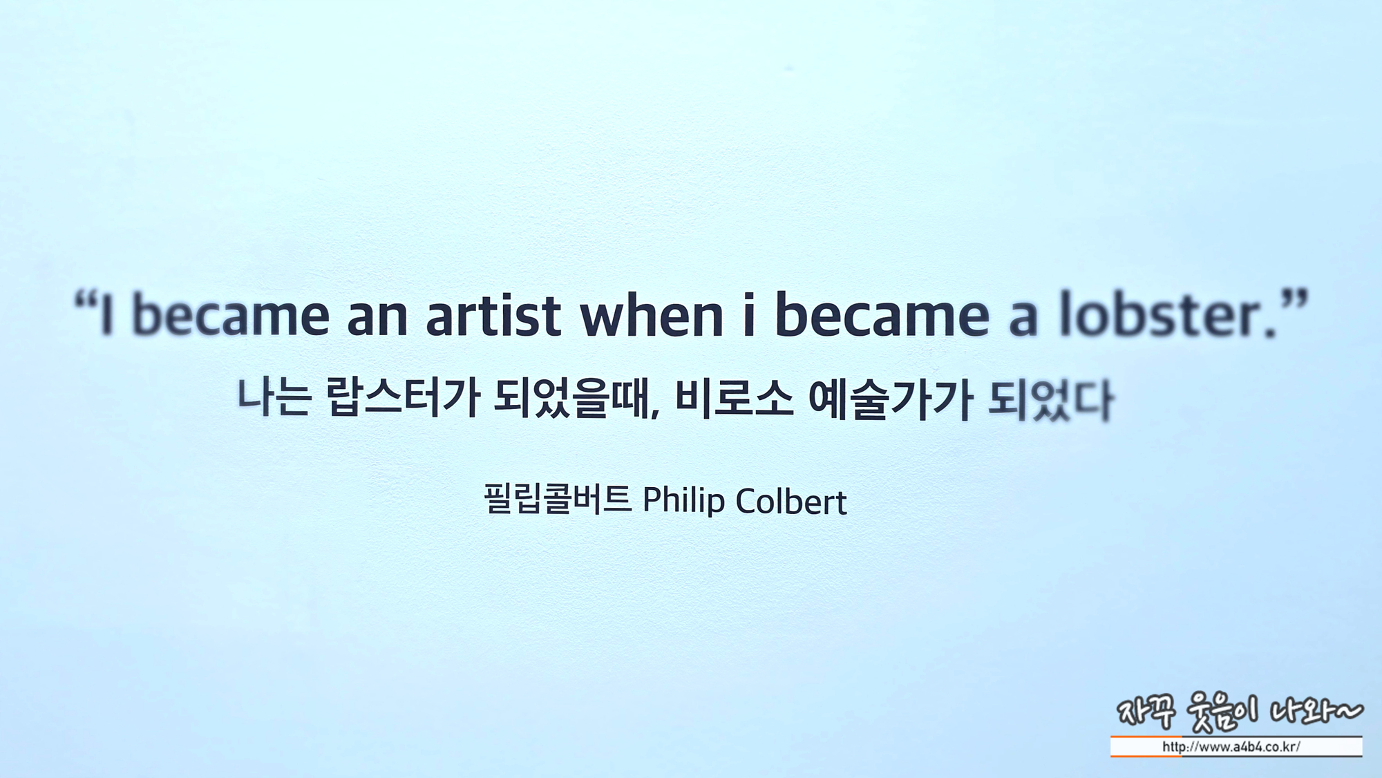지난 넥스트 뮤지엄 필립 콜버트 전시회에서도 만났던 생각하는 랍스터. 게가 좋아하는 필립 콜버트 작품 중 하나입니다.
