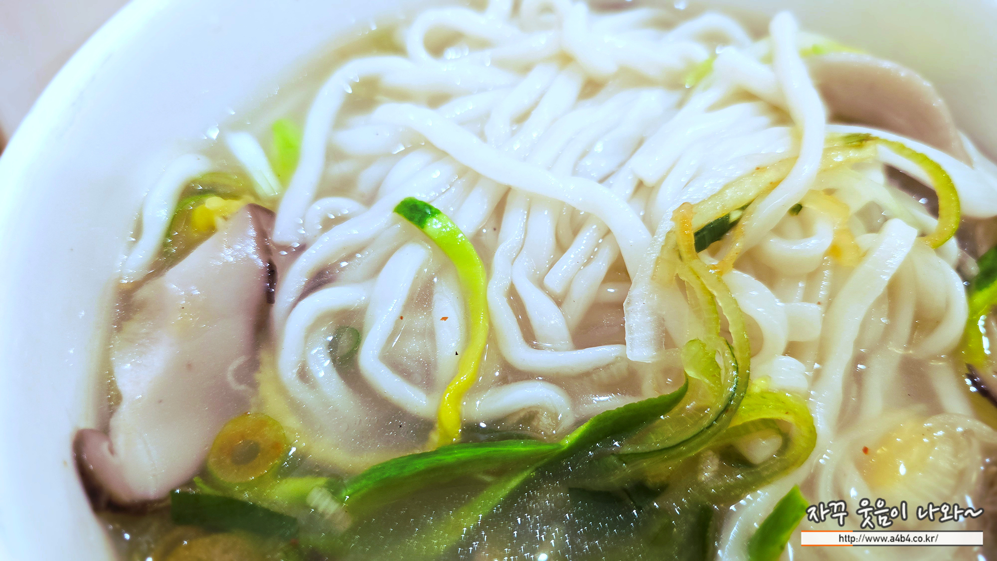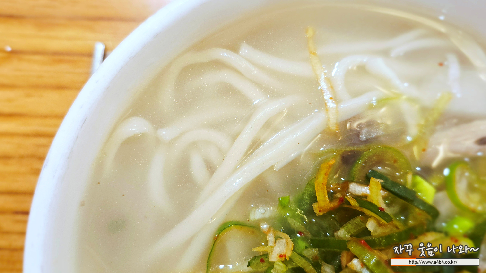 슴슴한 사골육수에 적당한 면발과 소고기, 양파 애호박, 표고버섯, 느타리버섯을 볶아 고명으로 사용하는데, 숨이 죽지 않은 양파가 사각사각 씹히는 식감이 있습니다.