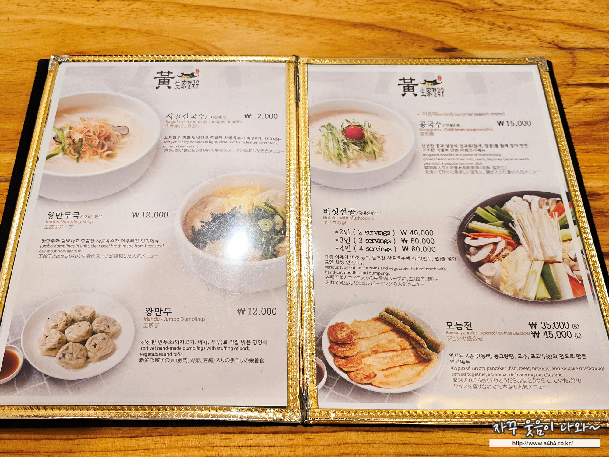 메뉴는 사골칼국수와 왕만두국, 콩국수, 왕만두가 가장 대표적인 메뉴이고요.