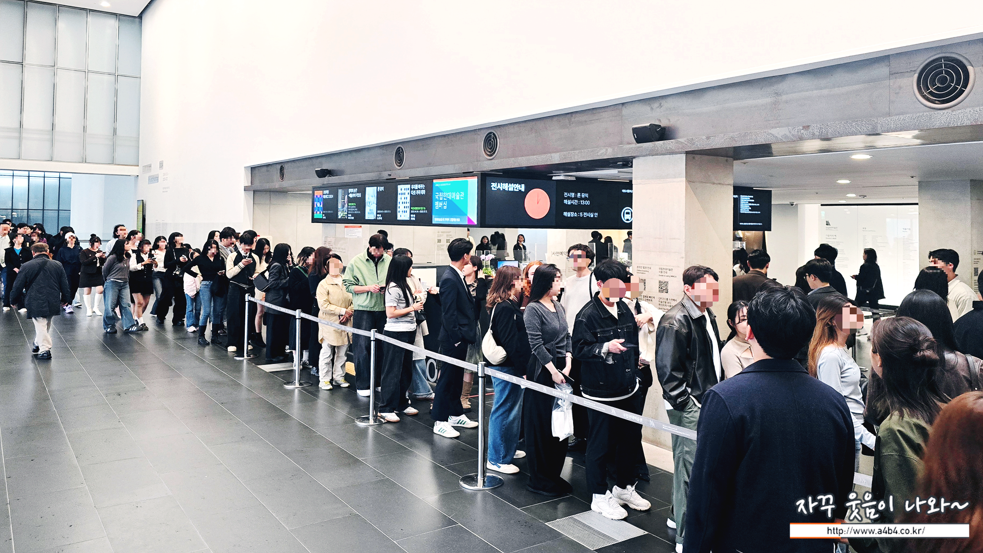 관람이 끝나고 나온 4시 경에는 지하 1층 공간에 빙빙 돌고도는 웨이팅이 발생하고 있습니다. 아마도 오늘 중으로 관람은 가능할지... 생각할 정도로 너무나도 많은 관람객들이 대기하고 있는데요. 여기에 토요일 저녁 무료 관람객까지 겹치면 론 뮤익 전시회 웨이팅 공간은 지옥이 될 것 같네요.