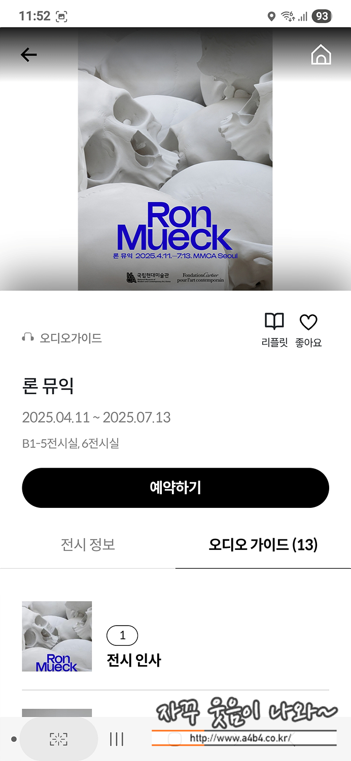 론뮤익 전시회 오디오가이드는 국립현대미술관 앱에서 무료로 이용이 가능합니다. 이번 전시회에 전시된 10개의 모든 작품에 대한 해설과 인트로, 아웃트로 정보도 제공됩니다. 이어폰 필수!!!