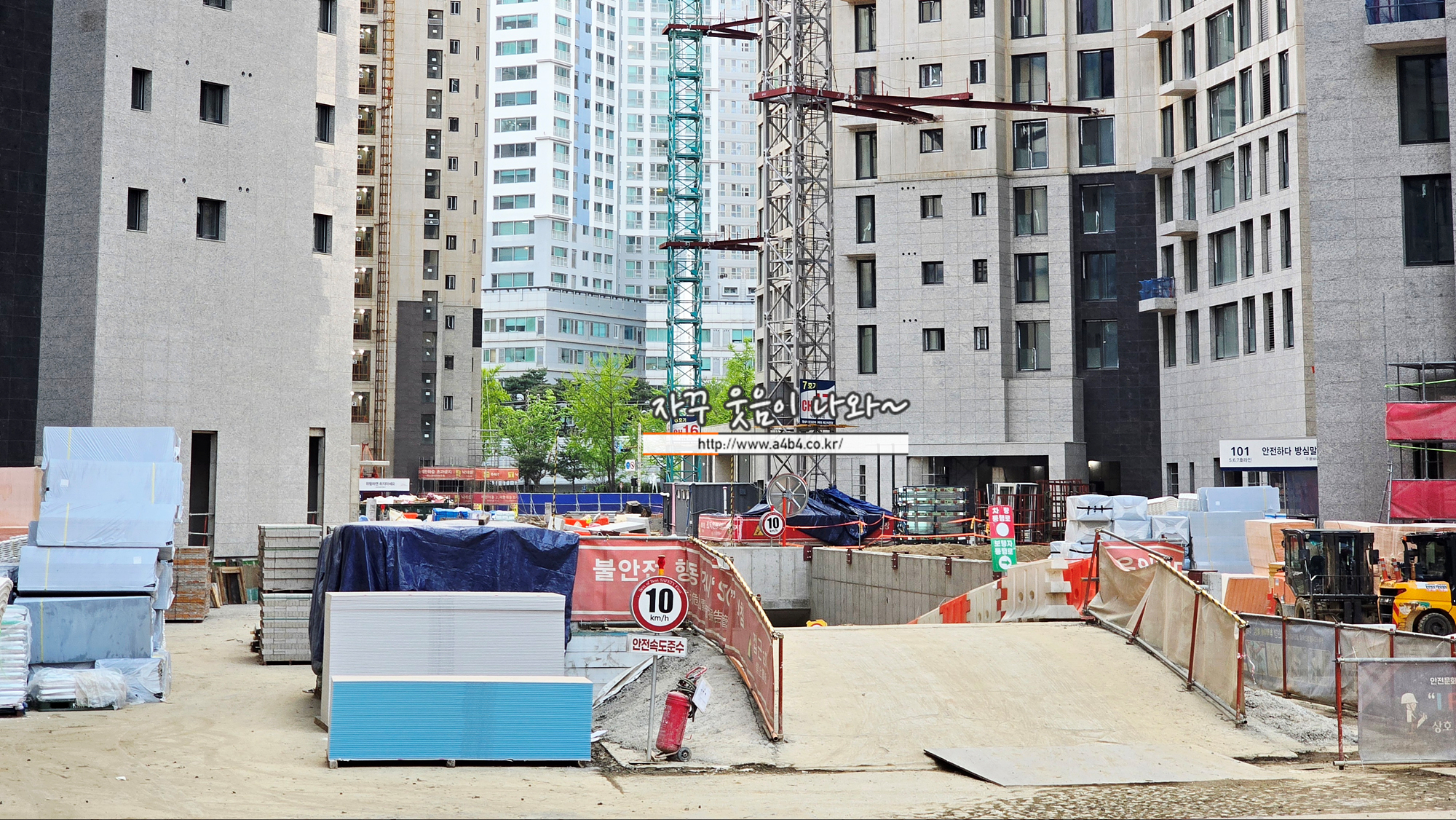 특히 도로에서 바로 지하로 주차장이 연결되게 건축되고 있는 것 같네요. 아마도 단지내에 차량이 다니는 구조는 아닌것 같네요.