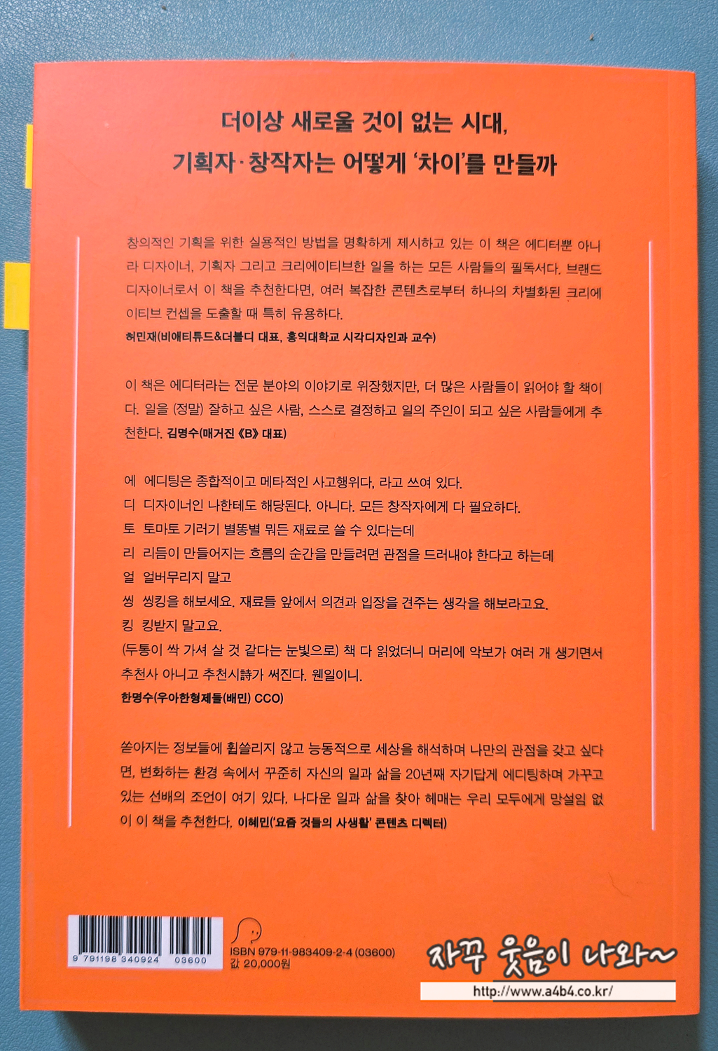 이번 최혜진 작가의 '에디토리얼 씽킹 모든 것이 다 있는 시대의 창조적 사고법'에서 일부는 공감하기 어려분 부분들도 종종 있더라는... 약간은 자극적인 에디팅이 좋은 편집이라는 생각을 갖게 만드는 것 같기도.
