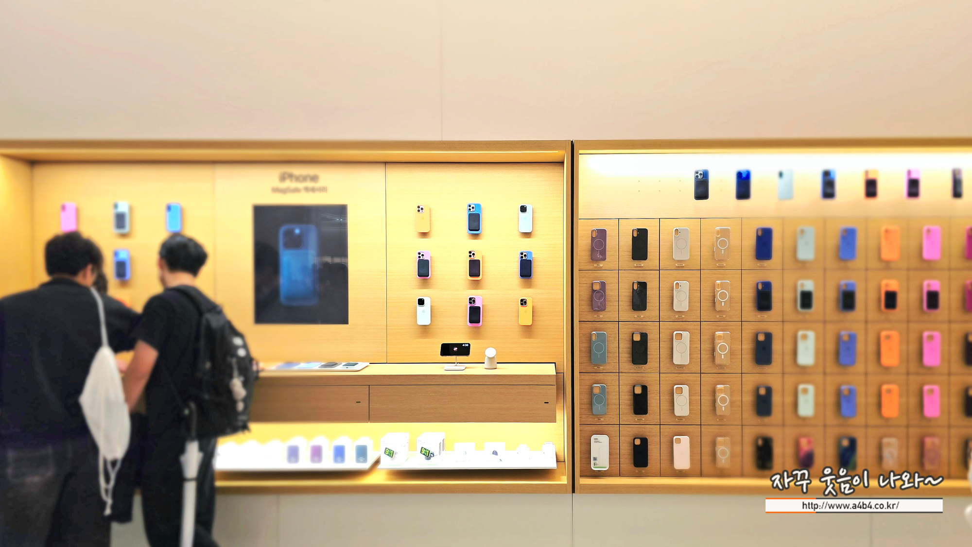 역시나 맥세이프형 아이폰 케이스(MagSafe iPhone Case)와 카드지갑 등이 컬러별로 전시되어 있습니다.