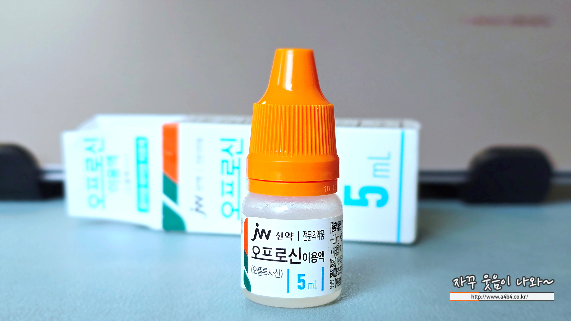 오프로신 이용액은 미황색-담황색의 등명한 액인데요.