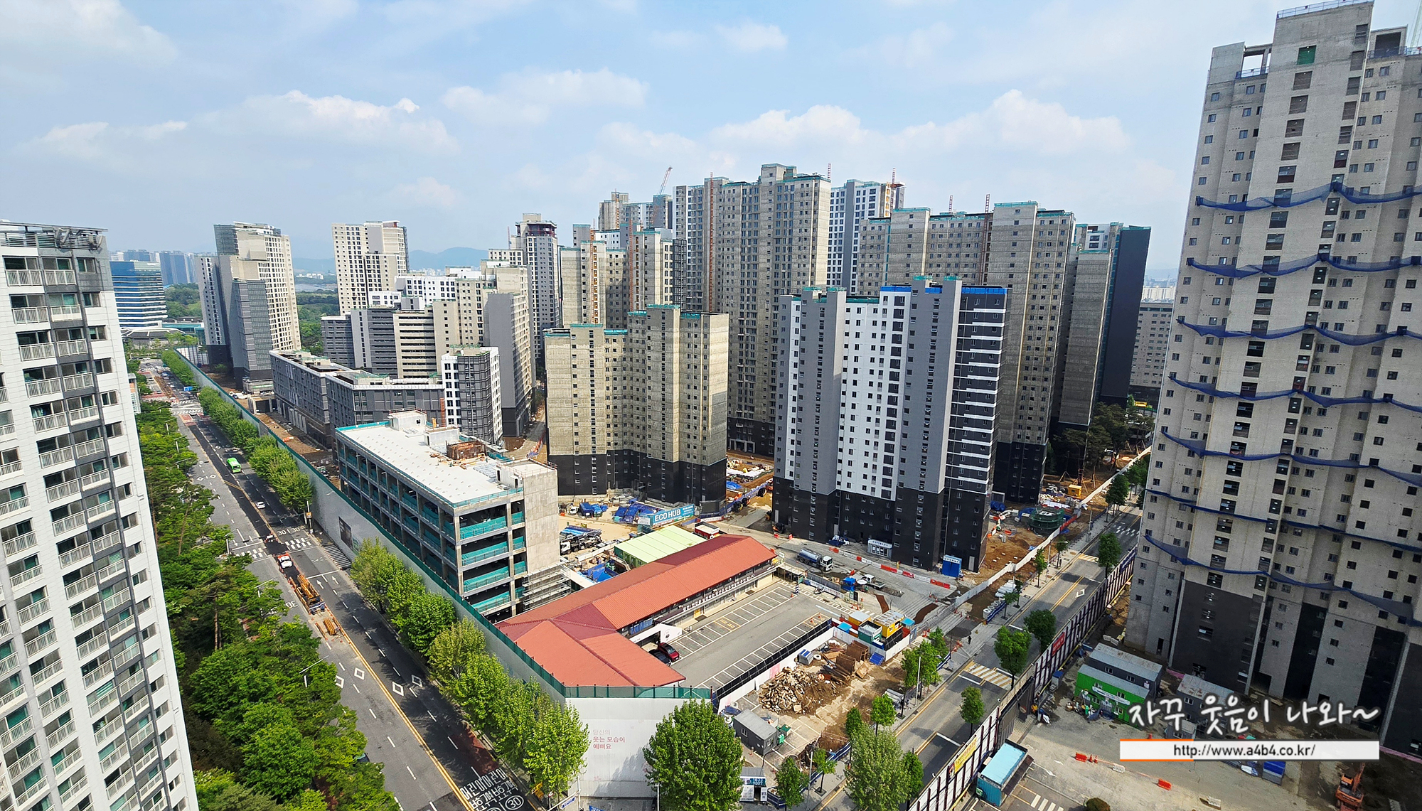 그러나 조감도는 식당 메뉴판의 음식사진과 같이 뻥이 많이 들어간 상당히 과장된 수준의 조감도 이고요. 실 현실세계에서 잠실 레미안 아이파크 단지내상가의 조화는 아래 사진입니다.
