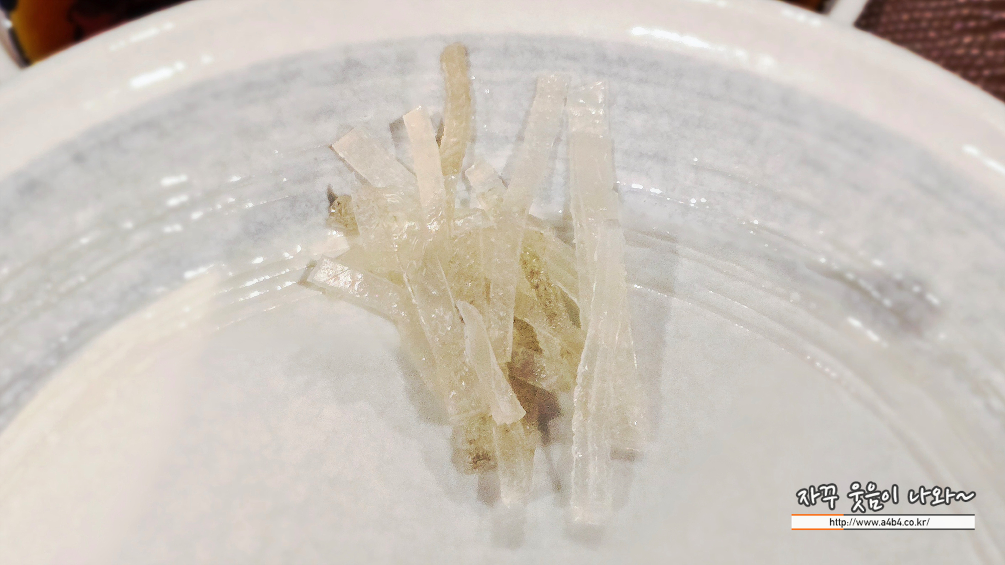 복어껍질 무침과 함께 복어껍질채가 나옵니다.