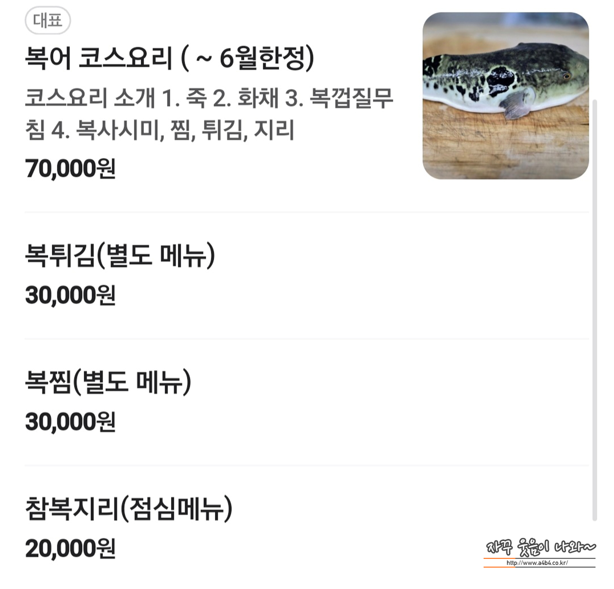 현재 프로모션으로 70,000원에 다양하고 맛있는 복어코스요리를 먹을 수 있다는 것은 지금 예약해야 할 이유