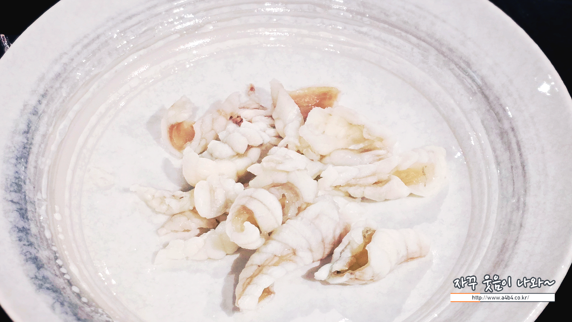 한 점씩 소스에 찍어 먹는데요. 식감이 참 좋더라는... 요녀석이 나오니 양주 한 잔이 갑자기 생각나네요. 복사시미로 이야기를 나누고...