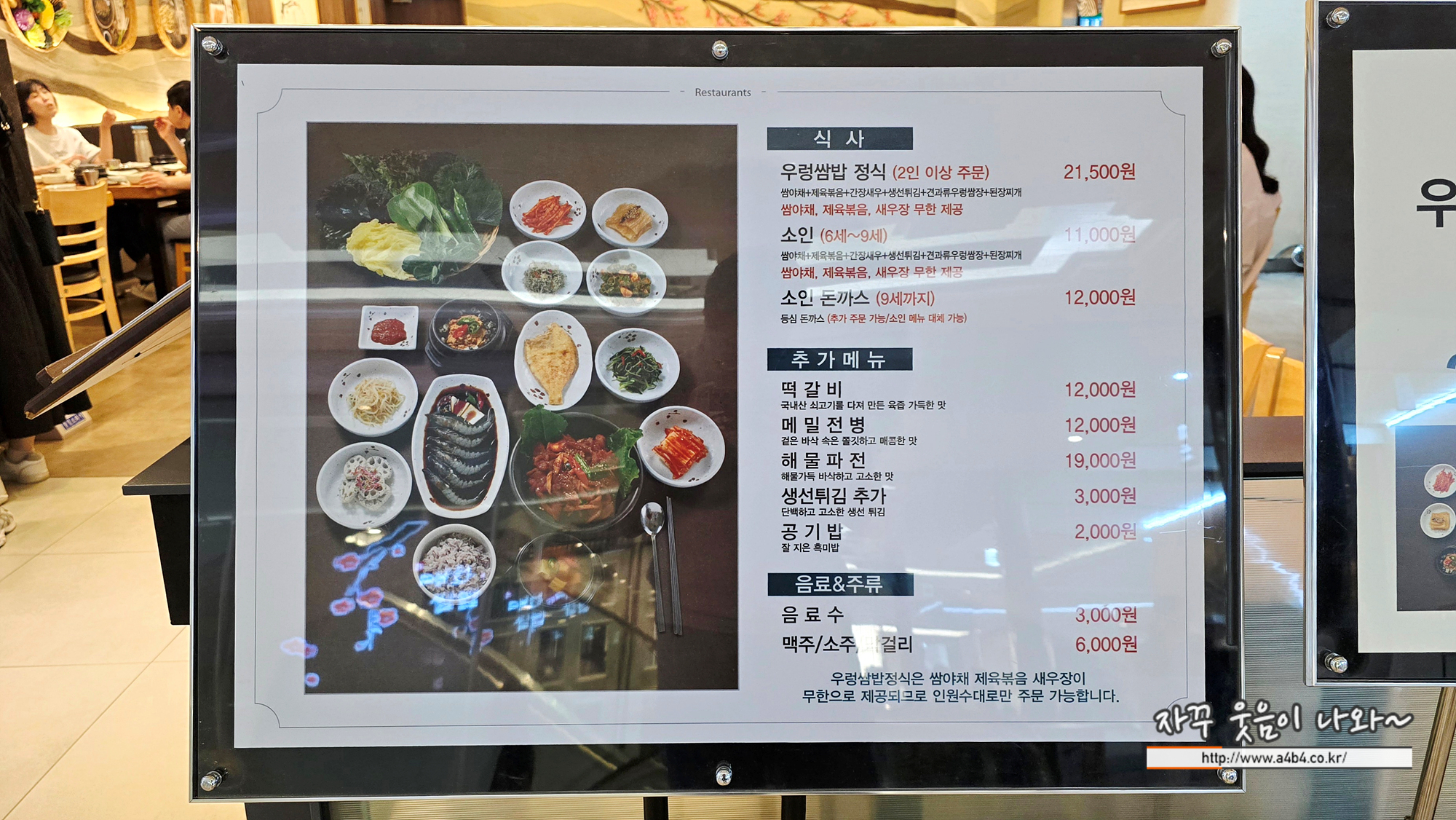 이곳은 우렁쌈밥과 제육볶음, 새우장, 야채가 무한리필되는 롯데백화점 맛집인데요.