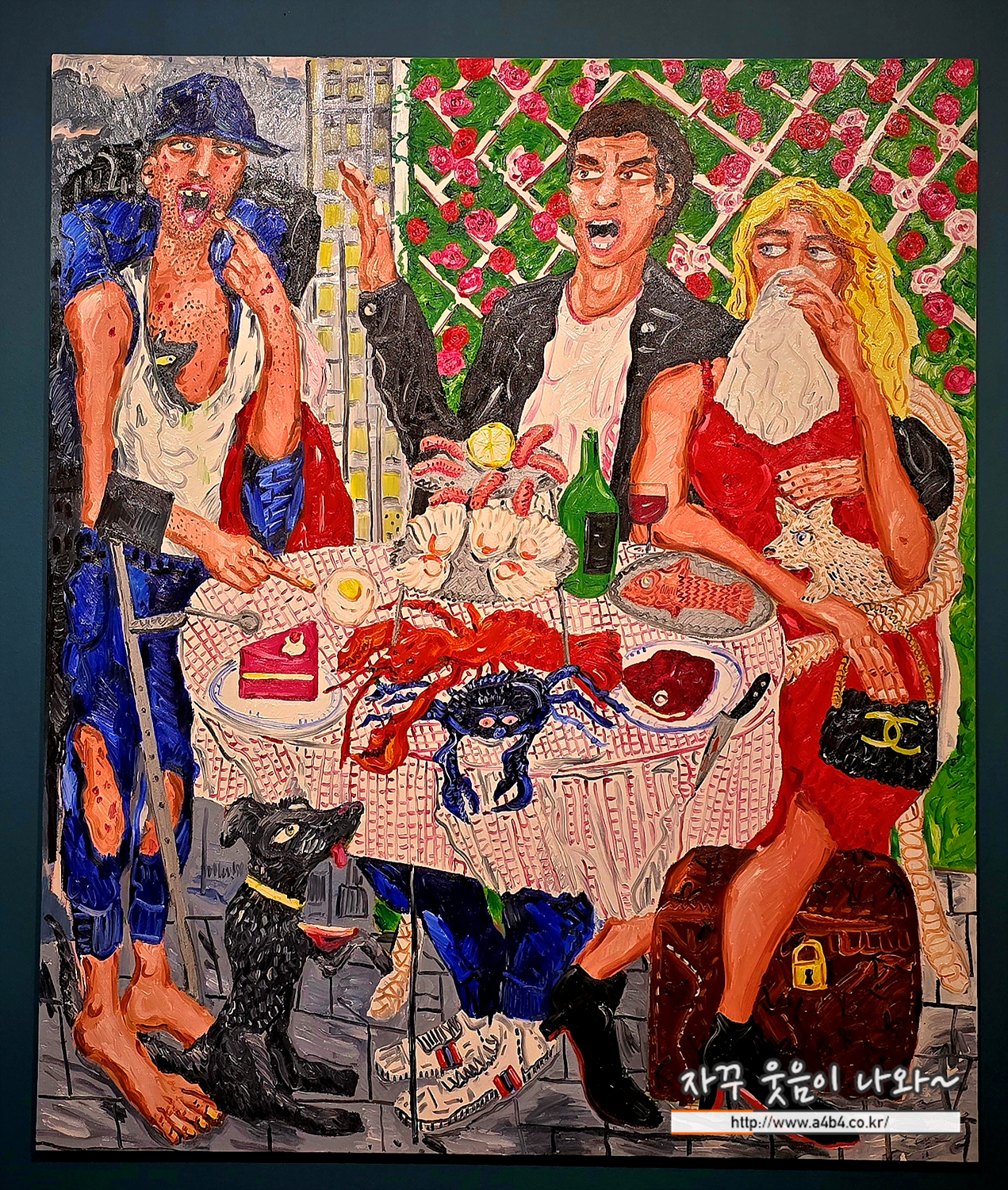 데일 루이스 (Dale Lewis) 회화는 겉으로는 평범해 보이는 일상 속에 숨겨진 폭력, 계급 간의 갈등, 소비주의의 과잉, 빈곤, 방탕한 음주 문화, 범죄 등 현대 사회의 어두운 이면을 드러냅니다. 루이스는 이러한 주제들을 화려하고 복잡한 구도로 구성된 대형 캔버스에 담아내며, 현실과 환상이 뒤섞인 우화적 내러티브로 표현합니다.