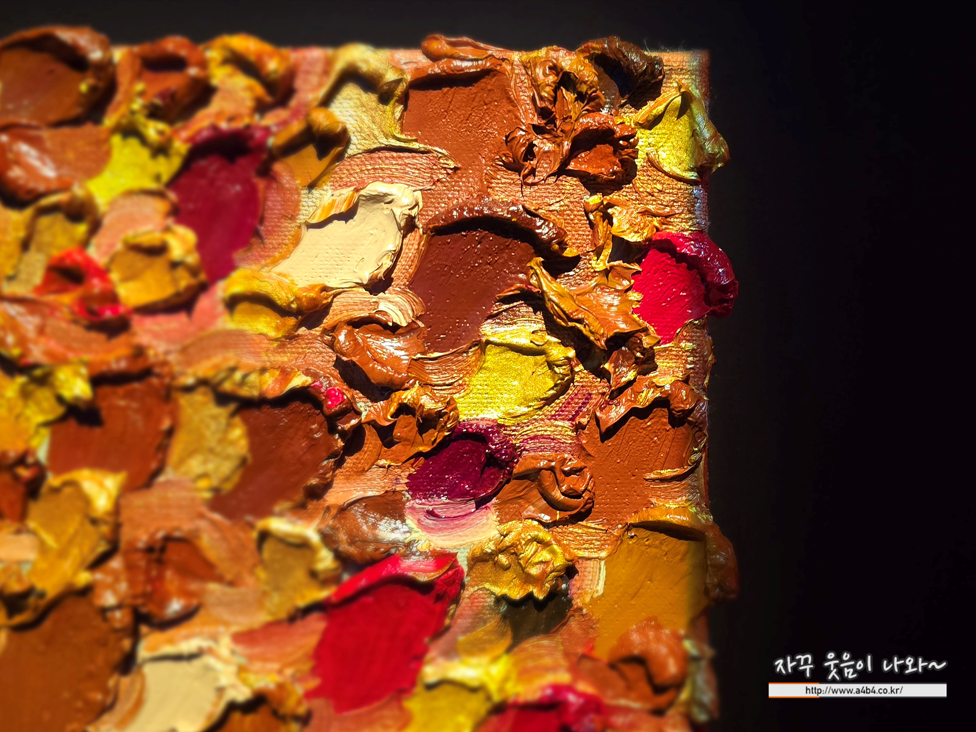 한 여름 주머니나 가방 속에 있다가 녹아버린 꾸덕한 상태의 가나 초콜릿이 생각나는 작품