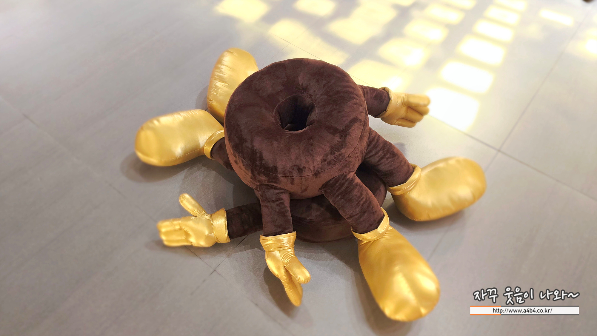 이 작품 속 카카오 인형들은 관람객이 인형에 앉아 쉬거나 인형과 함께 사진 찍기도 하는데요. 아이들이 너무 거칠게 다루네요.