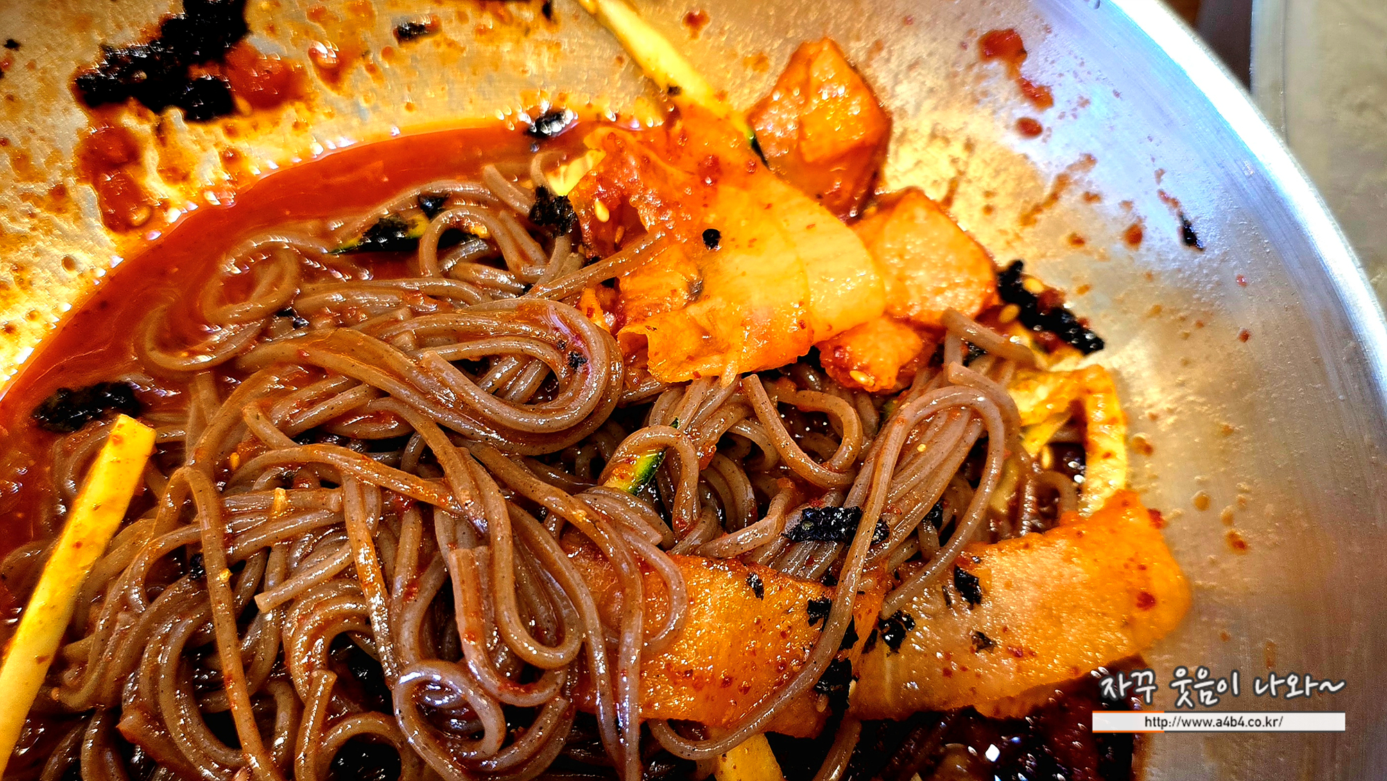 메밀의 식감과 매콤달콤한 양념맛이 좋습니다. 역시나 맵기는 보통수준입니다. 매운맛 좋아하시는 분들은 다소 약하실 수 있어요.