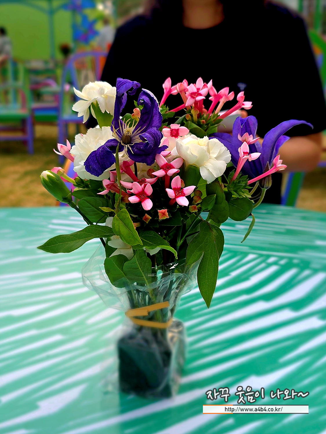 잠실 반클리프 아펠 전시회 스프링 이즈 블루밍 꽃다발 만들기 체험에서 제작한 꽃다발입니다. 이번 체험의 종이 화분도 프랑스 아티스트 알렉상드르 뱅자맹 나베가 작업한 작품입니다.
