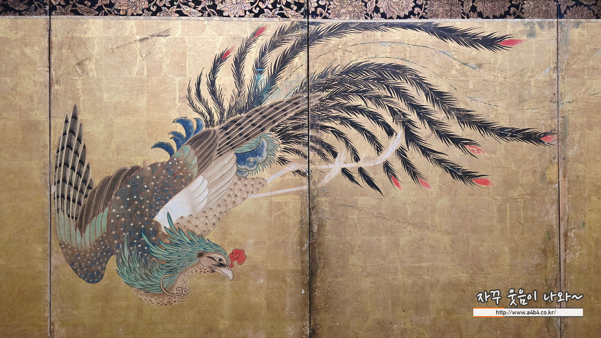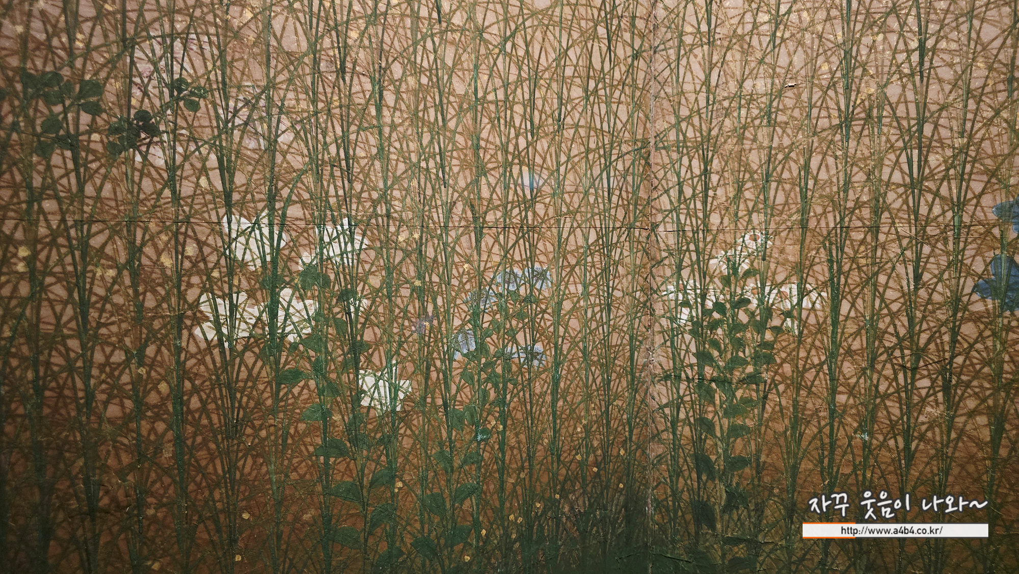 앞의 병풍이 여백은 무시하고 병풍 전체를 빽빽하게 채웠다면 이번 작품은 여백의 미와 화려하면서 안정적인 느낌을 주고 있다.