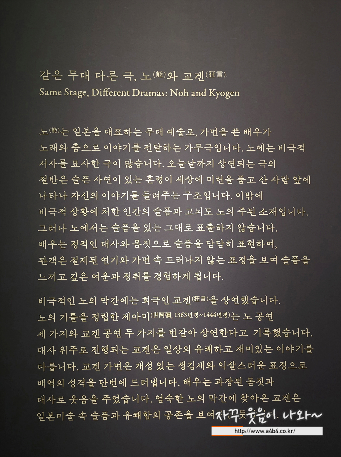 같은 무대에서 펼쳐지는 서로 다른 극, 노(能)와 교겐(狂言)