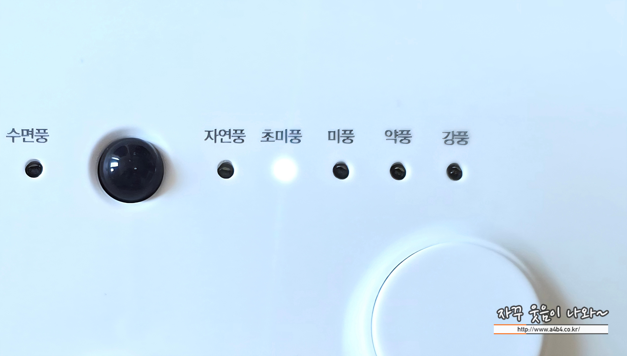 바람세기 조절은 강풍으로 가기 위해서 총 4번 버튼을 눌러야합니다.