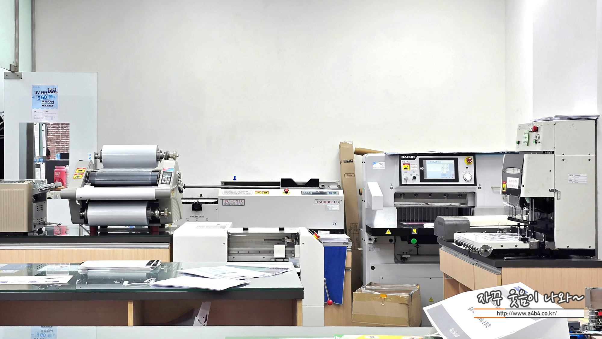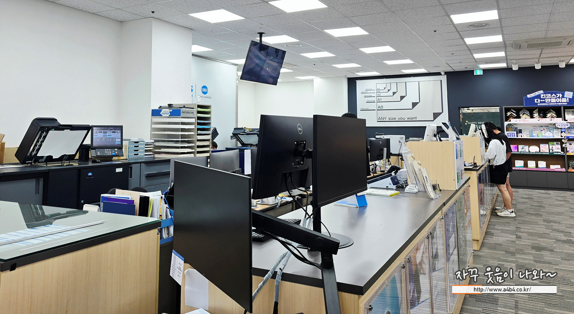 기존 킨코스의 컬러 흑백 디지털 출력은 물론 현수막제작 및 액자, 사진인화, 스티커 제작 등 인쇄와 소품제작 등 많은 업무가 가능합니다.