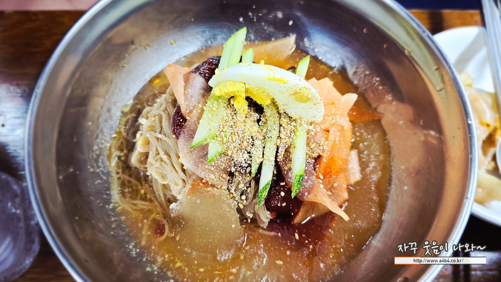 역시 열무냉면과 같이 육수가 짐짐합니다. 시원하지 않아요. 더운 여름에 물냉면 먹는 목적이 무엇일지...