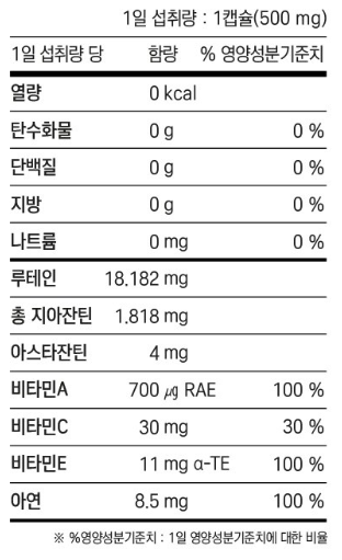 가장 중요한 성분인 루테인과 총 지아잔틴 용량은 18.182mg과 1.818mg으로 소숫점 3자리수까지 동일합니다. 비타민 A 함량도 동일하고요. 이외에 몇가지 비타민이 아이클리어에 더 추가되어 있다고 하지만 두 배의 가치를 가진다고는 생각하지 않습니다.